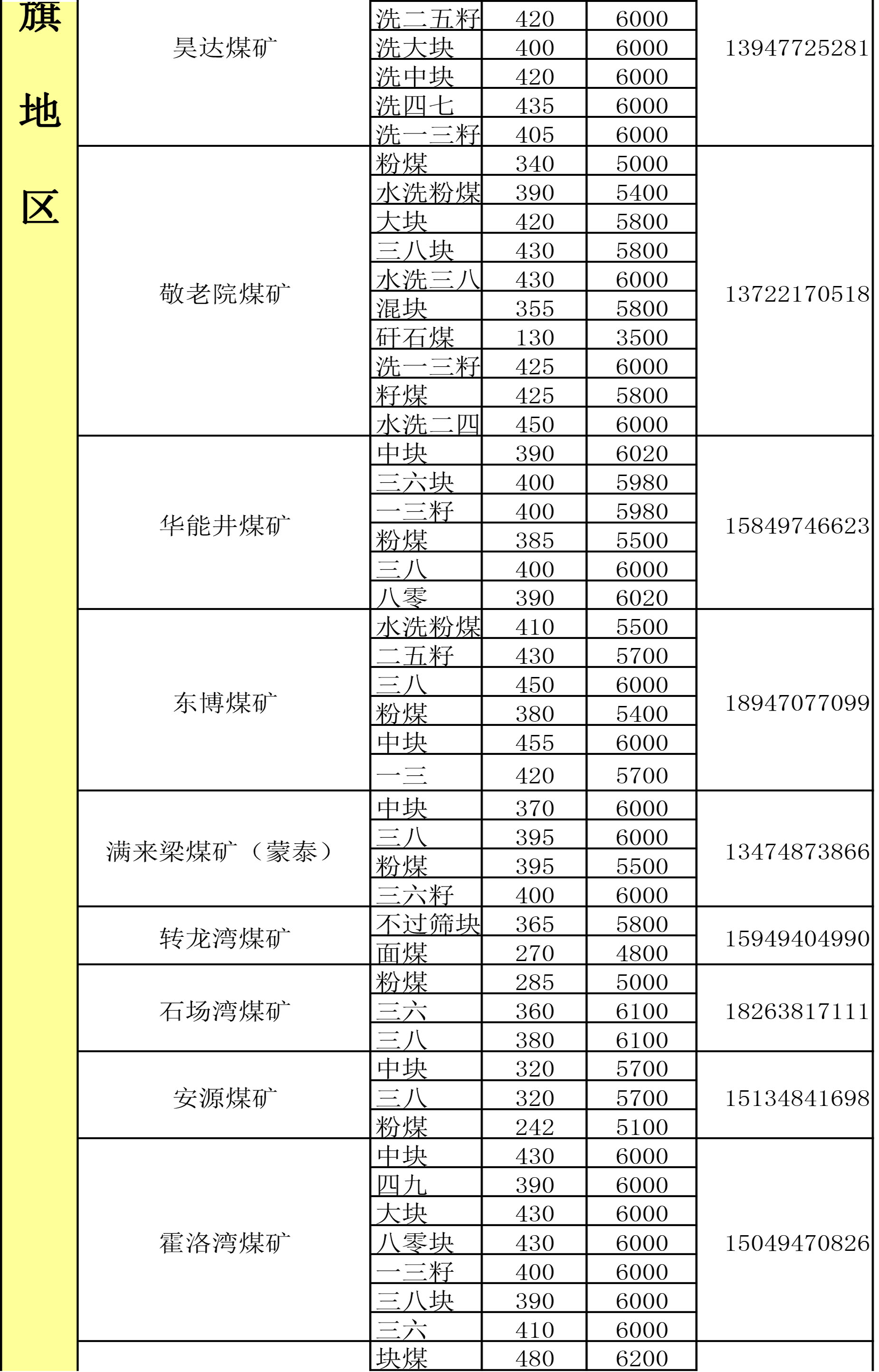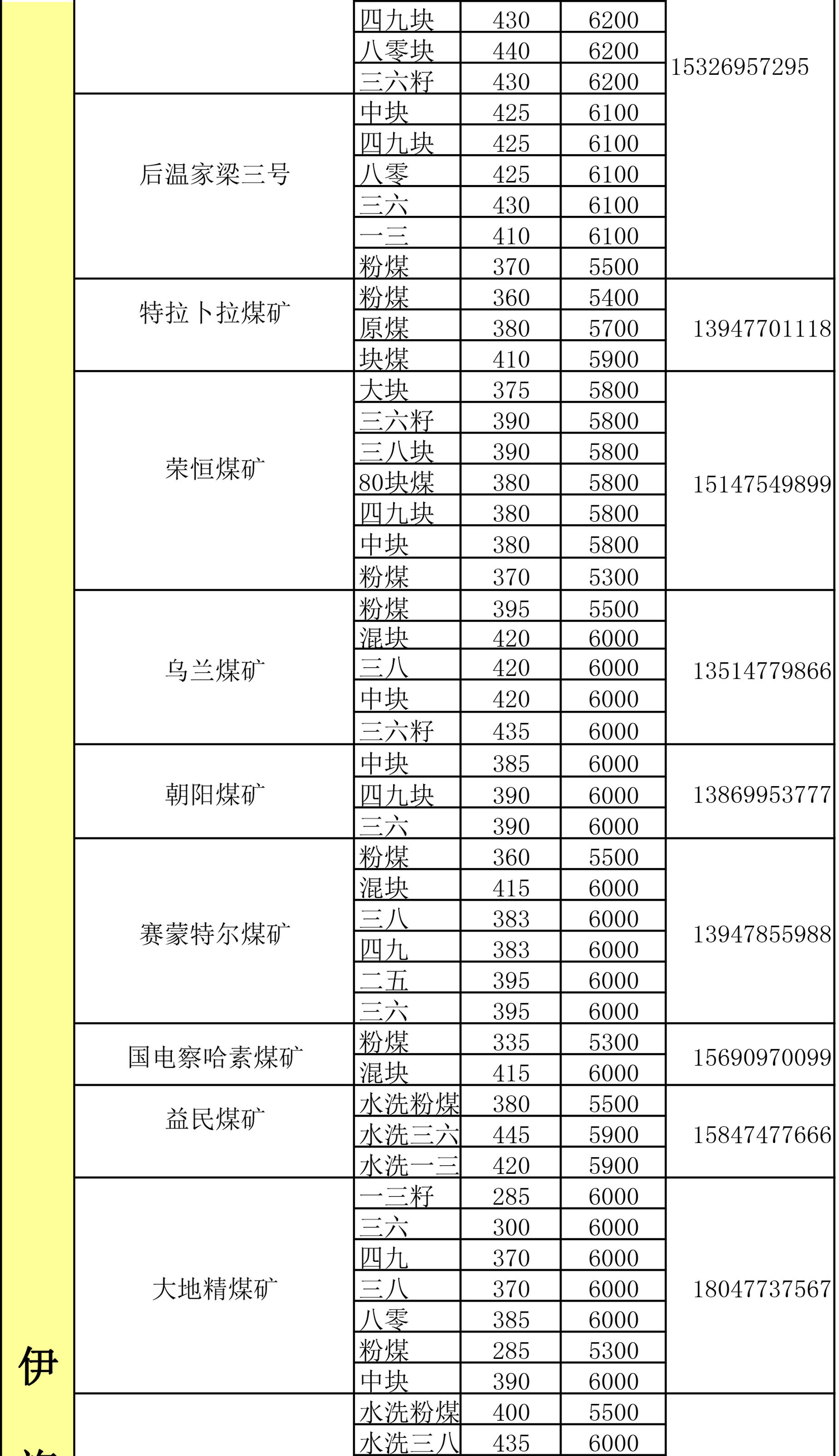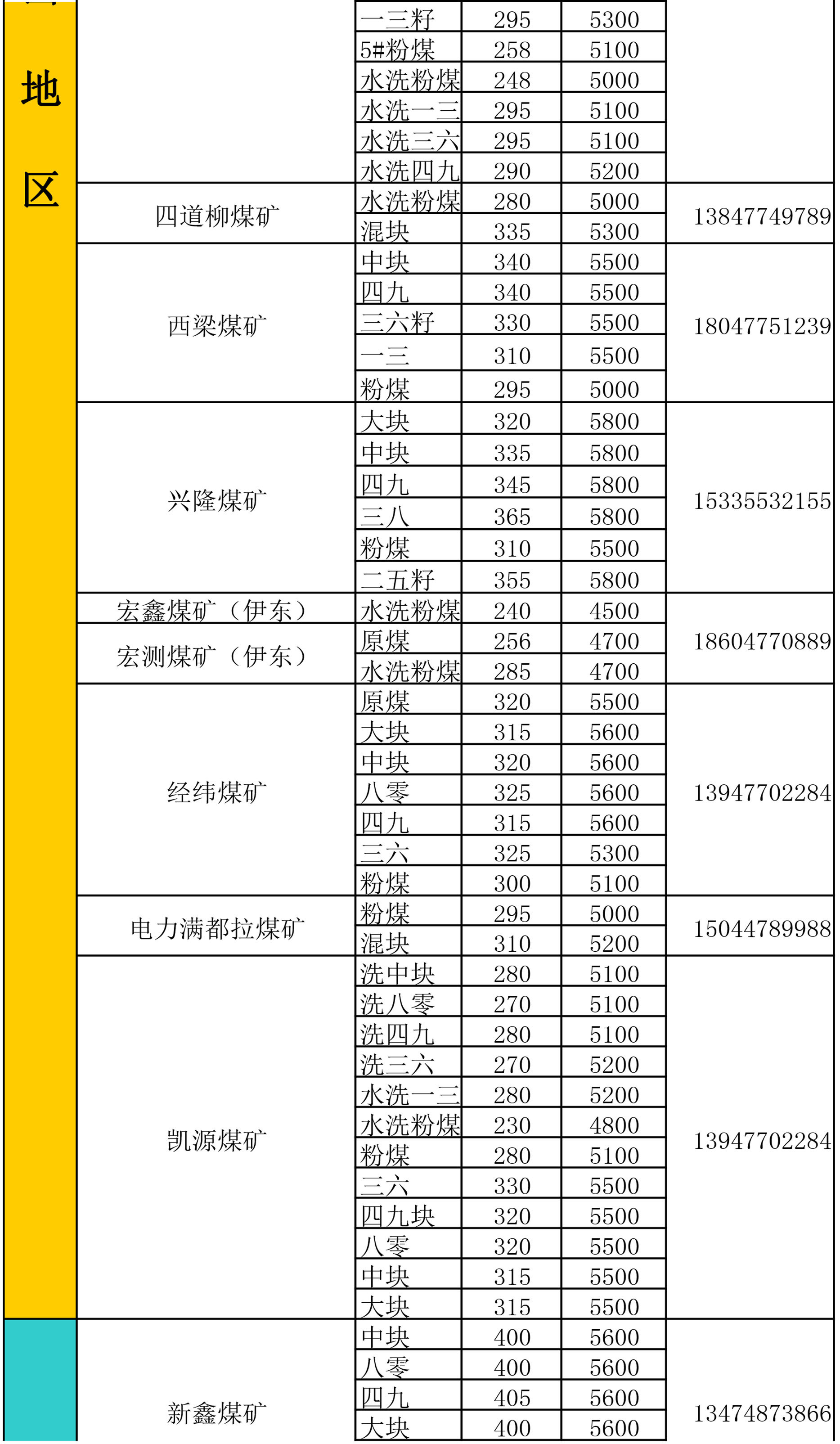鄂尔多斯地区煤矿坑口报价