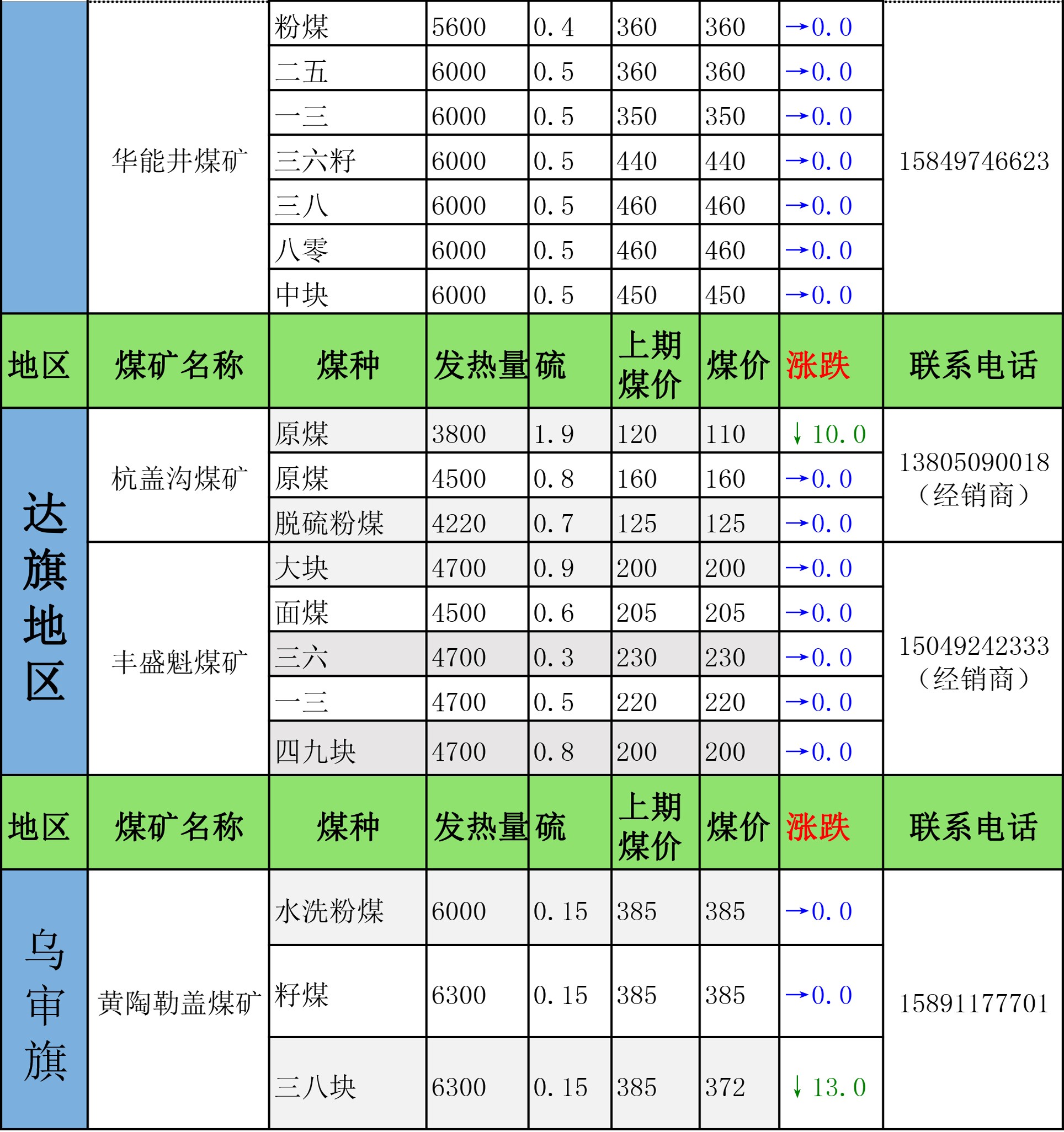 鄂尔多斯煤炭网最新数据快报(2.2)