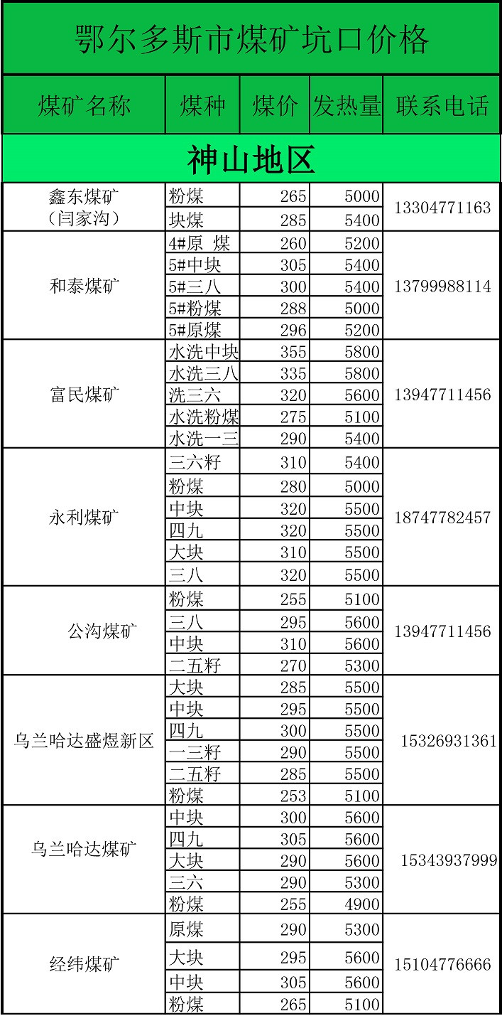 鄂尔多斯煤炭网最新数据快报(2.5)