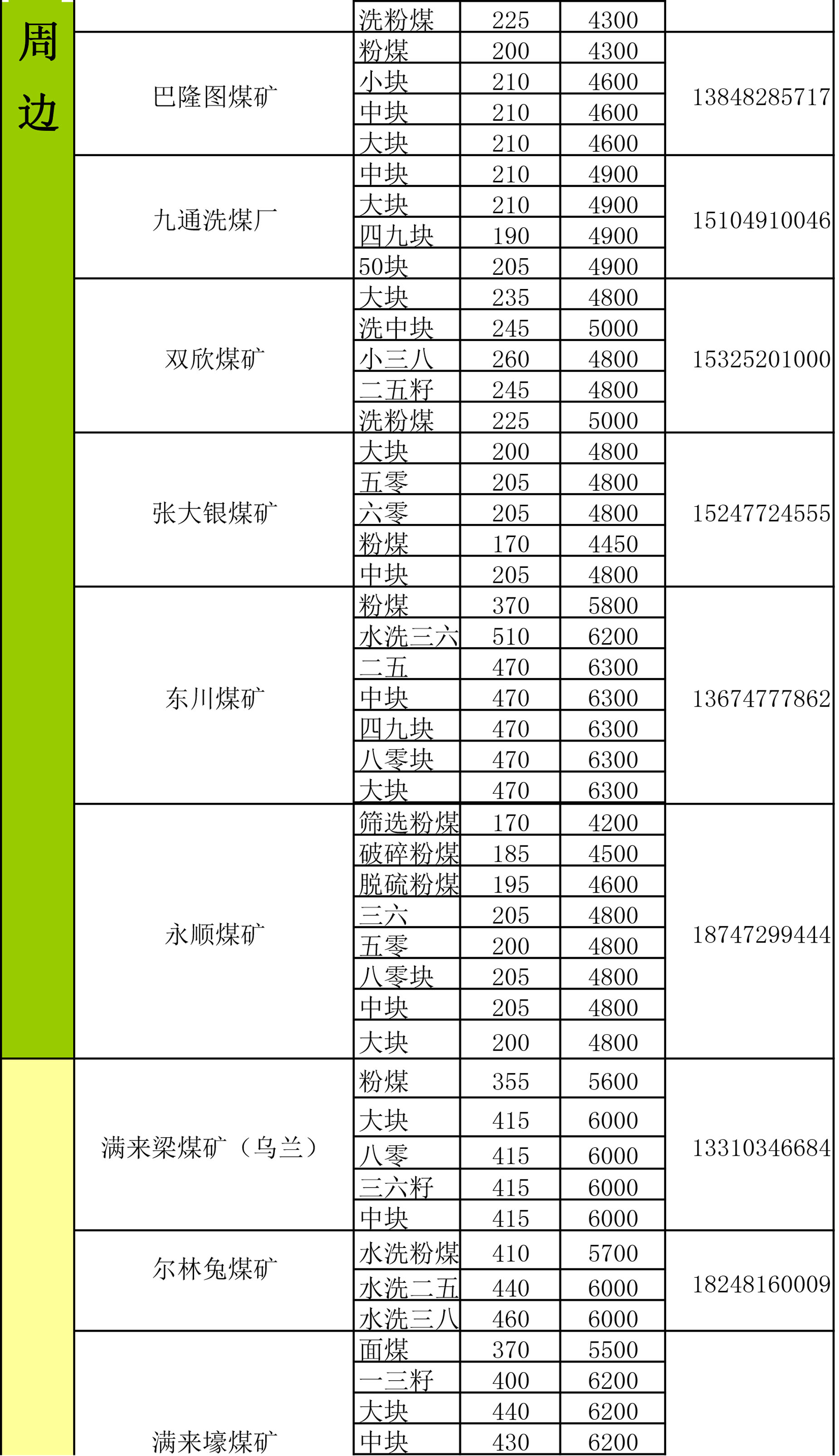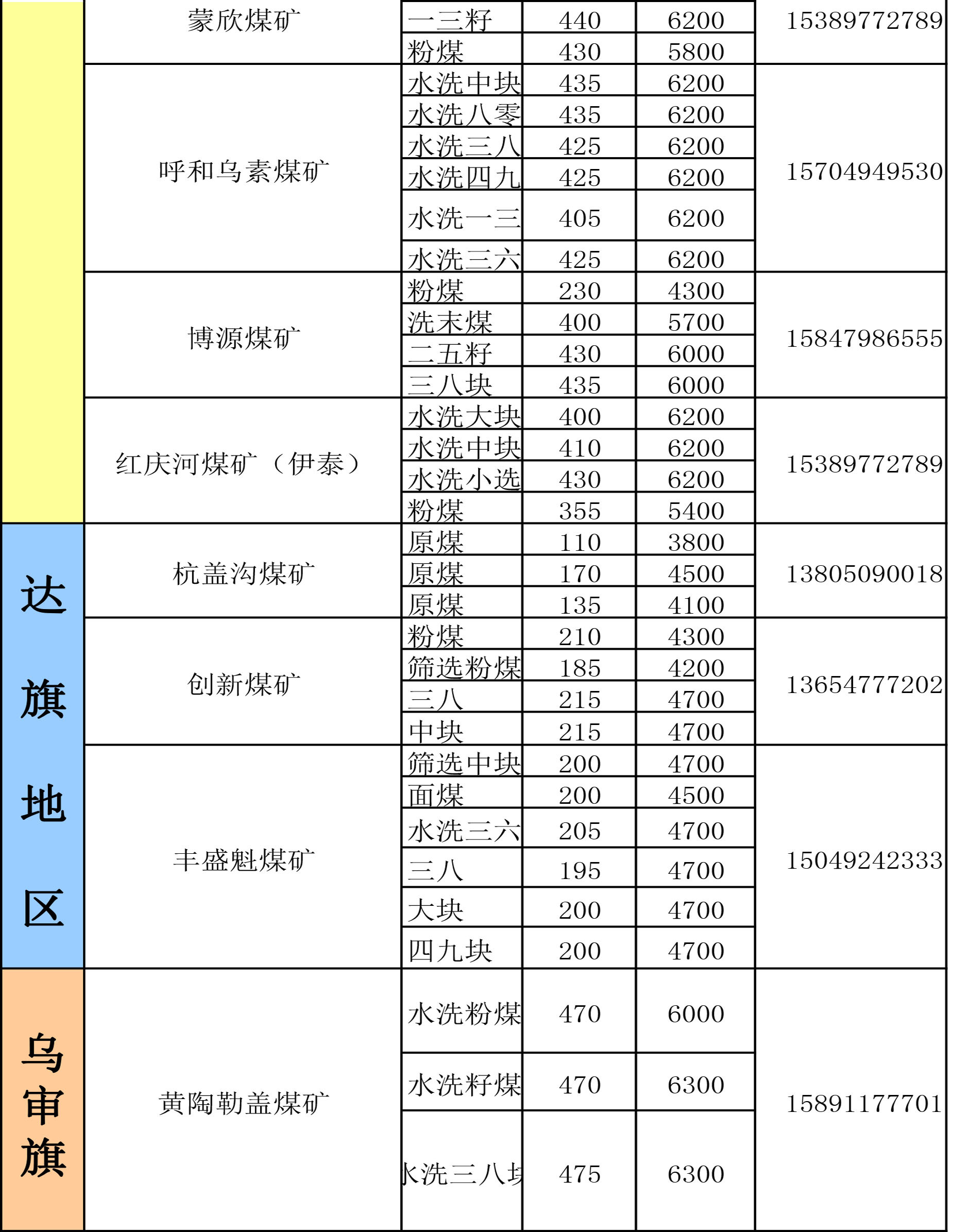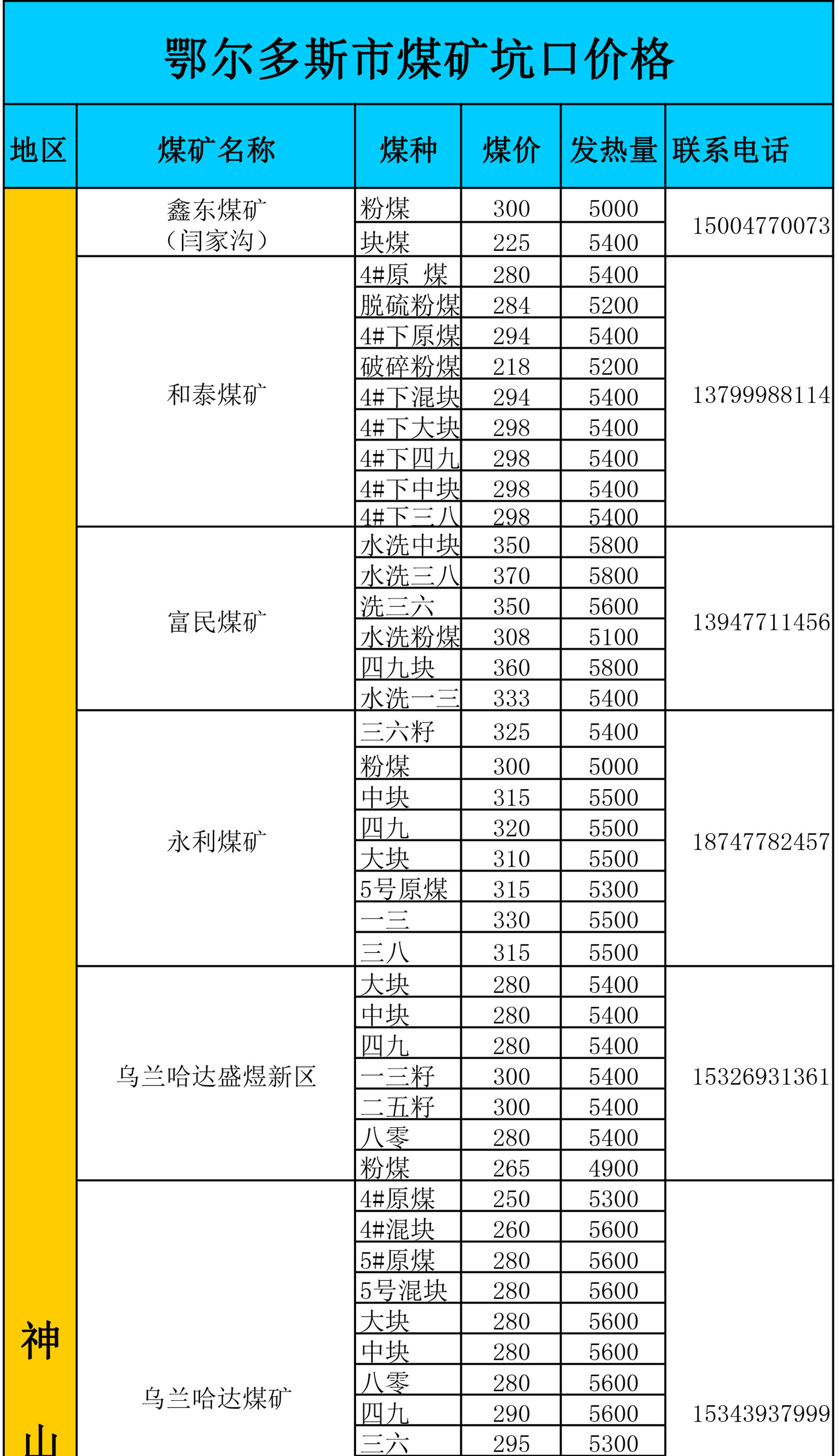 鄂尔多斯地区煤矿坑口报价