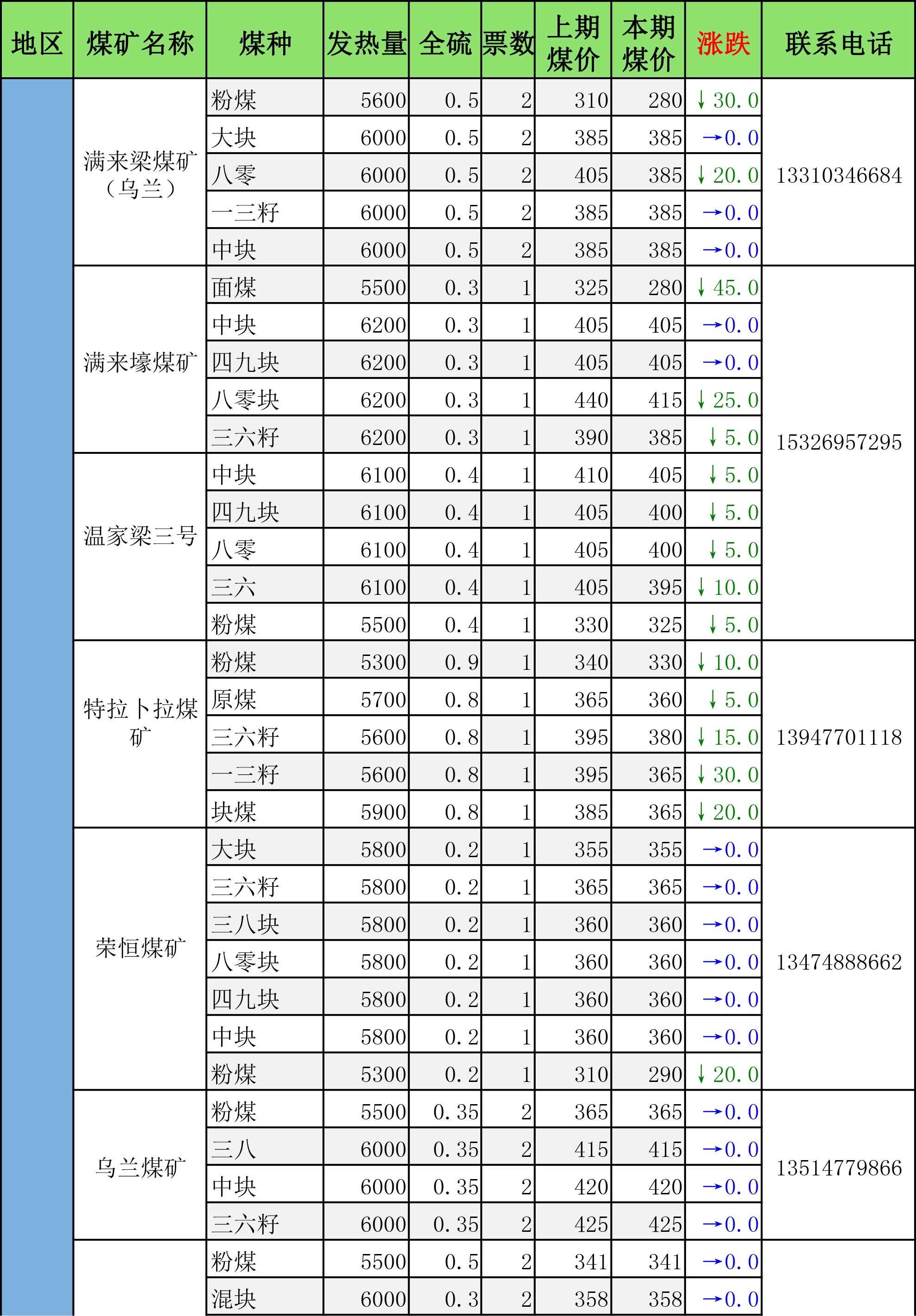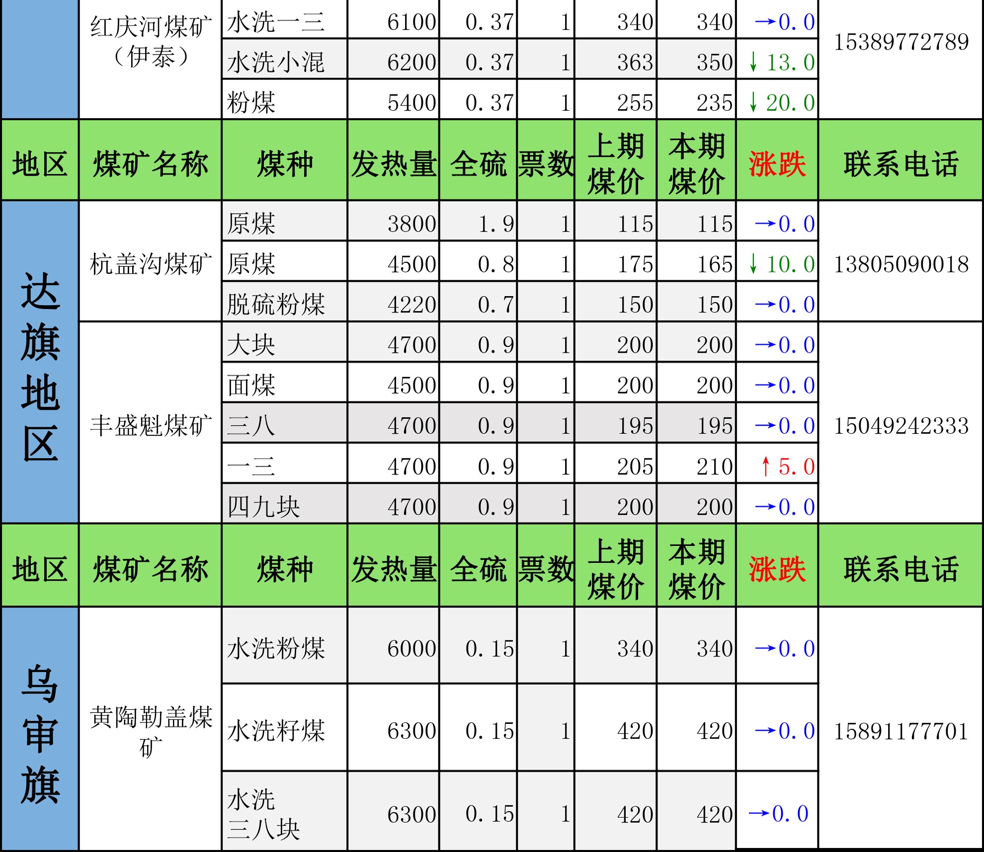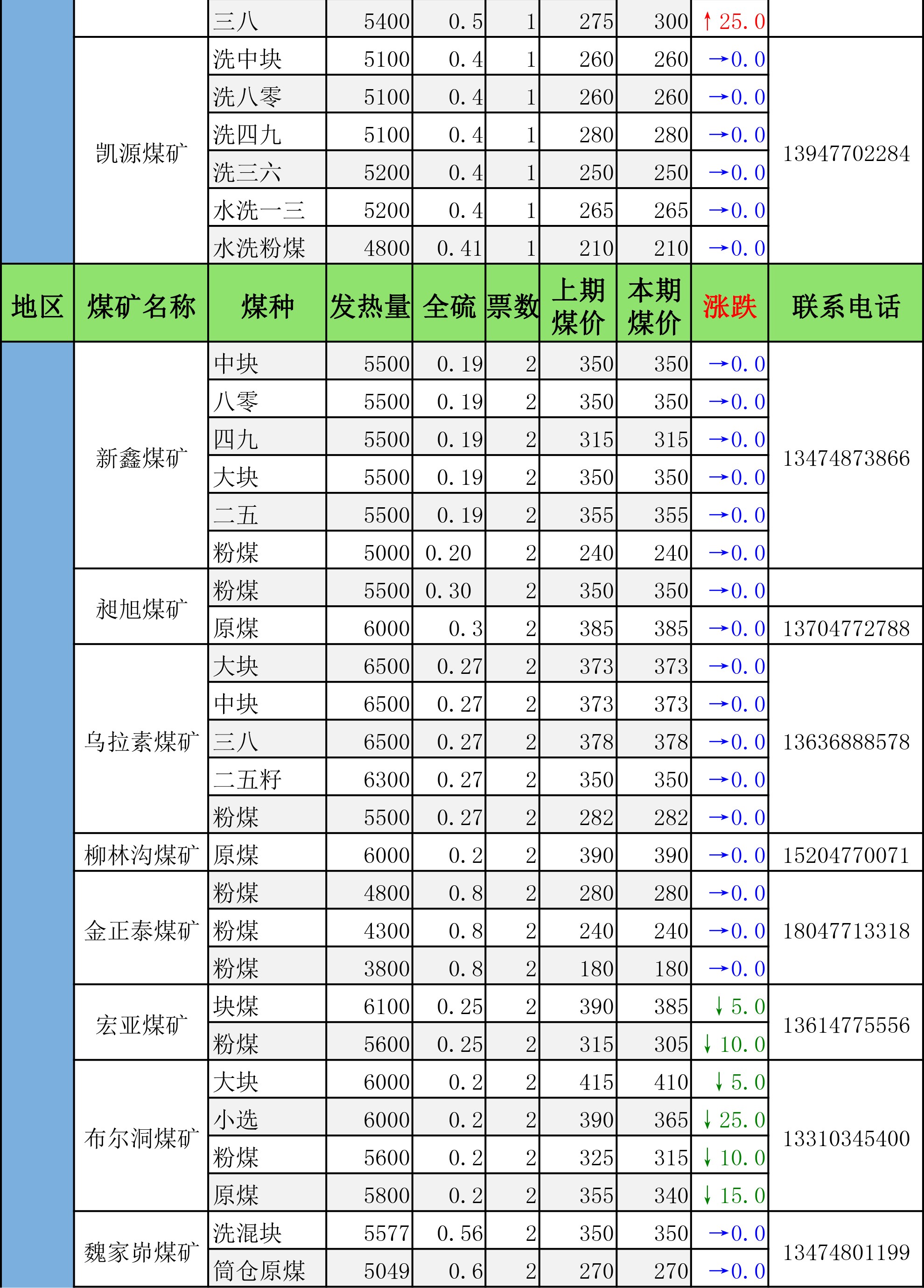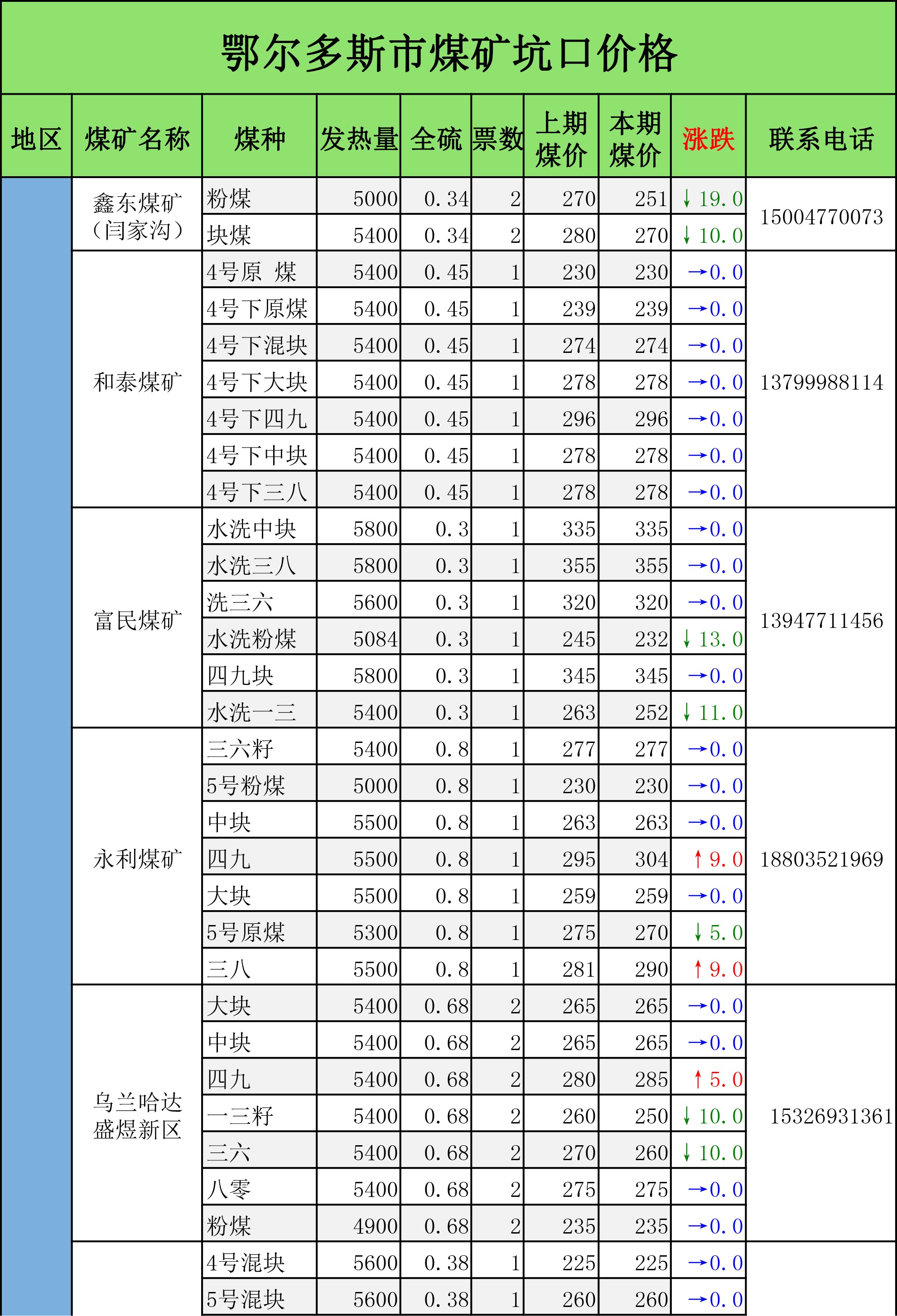 鄂尔多斯煤炭网最新数据快报(1.5)