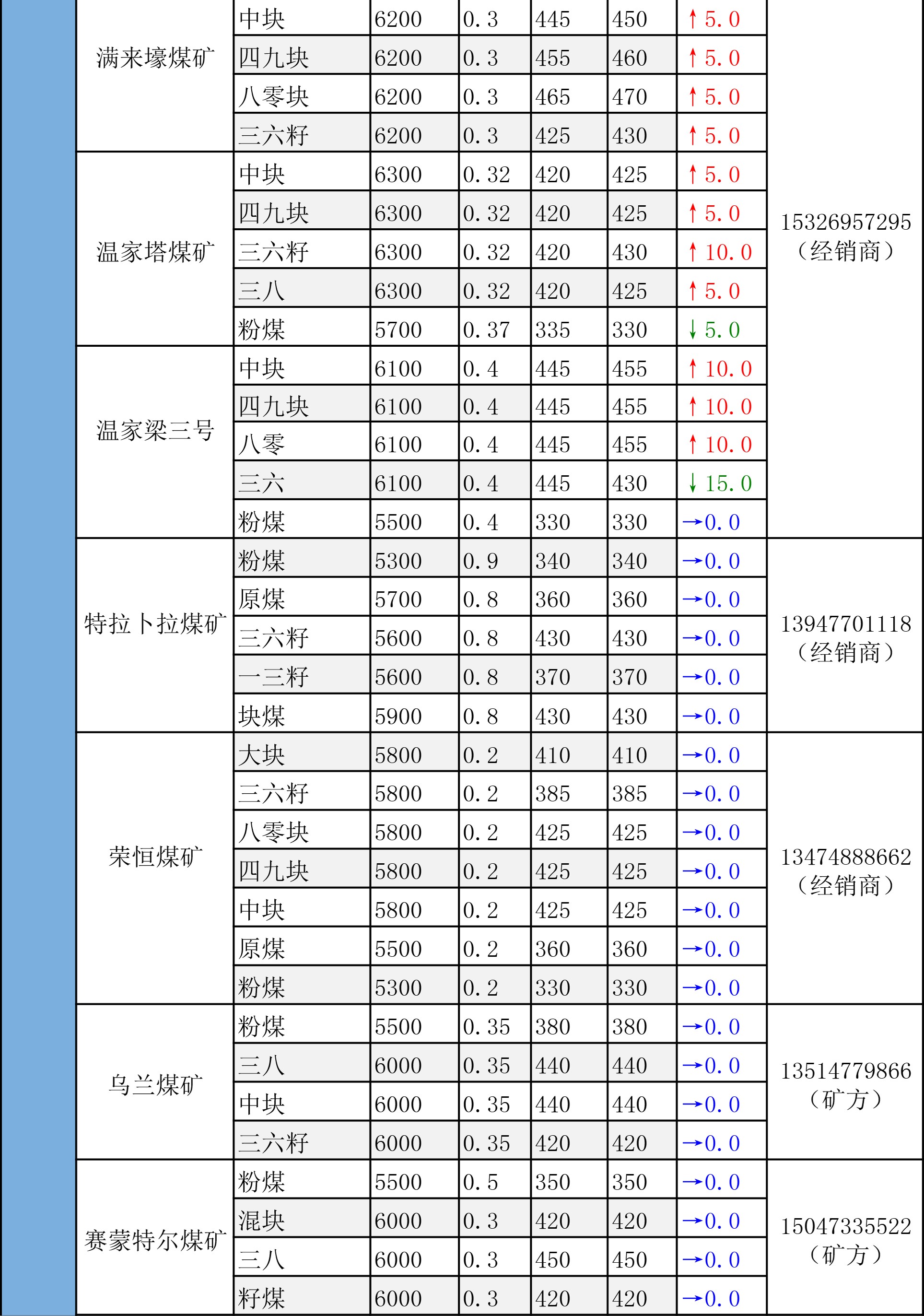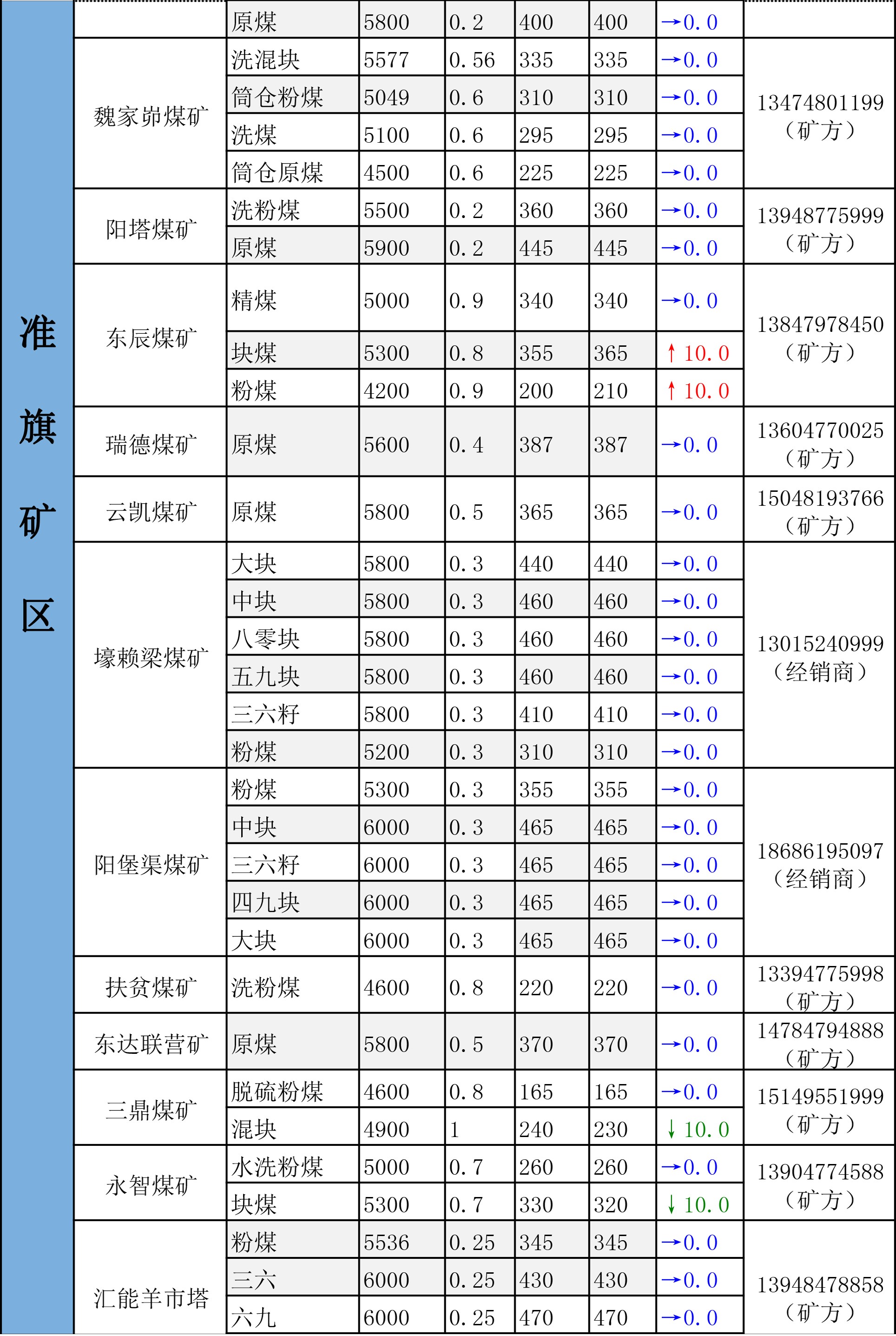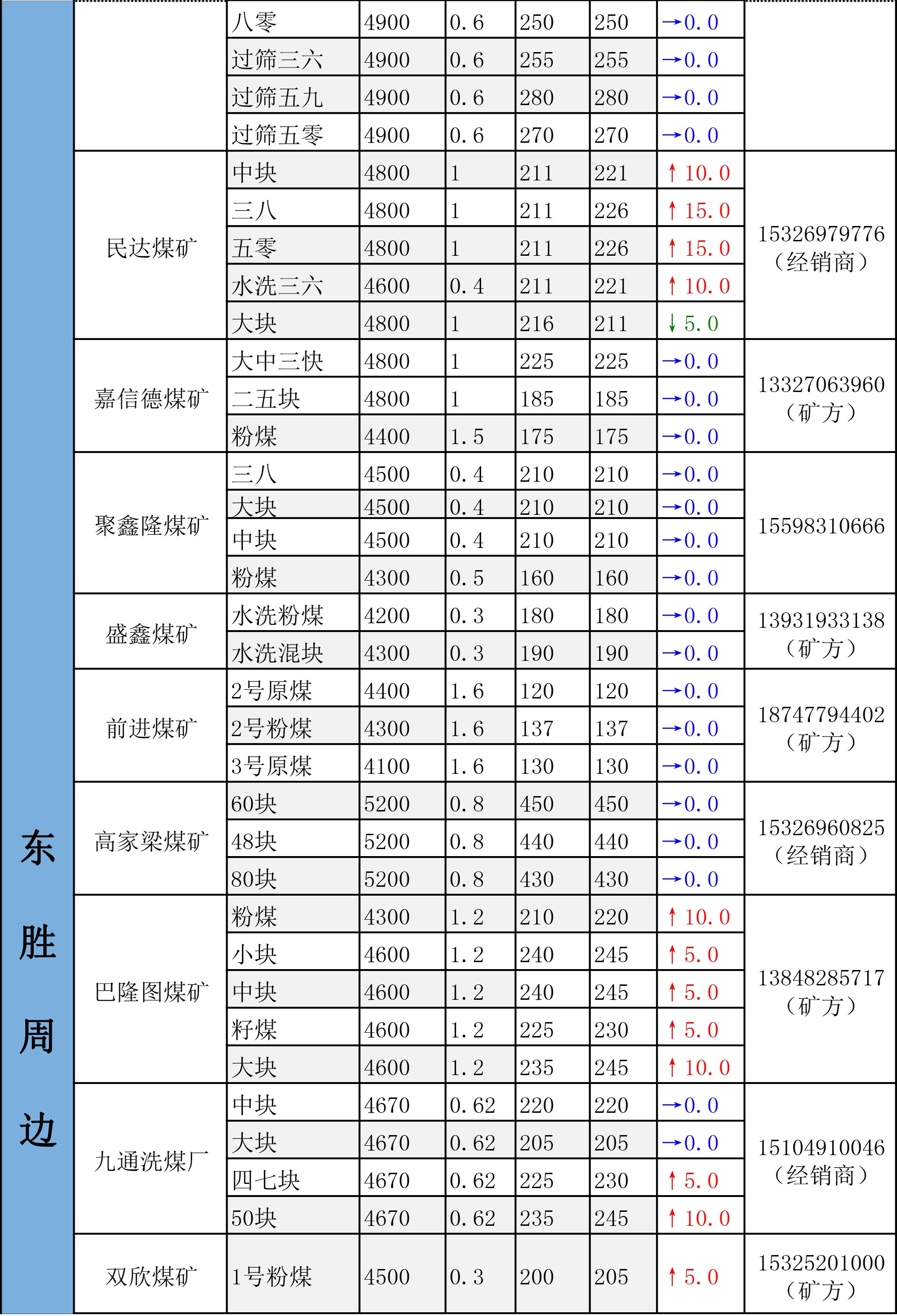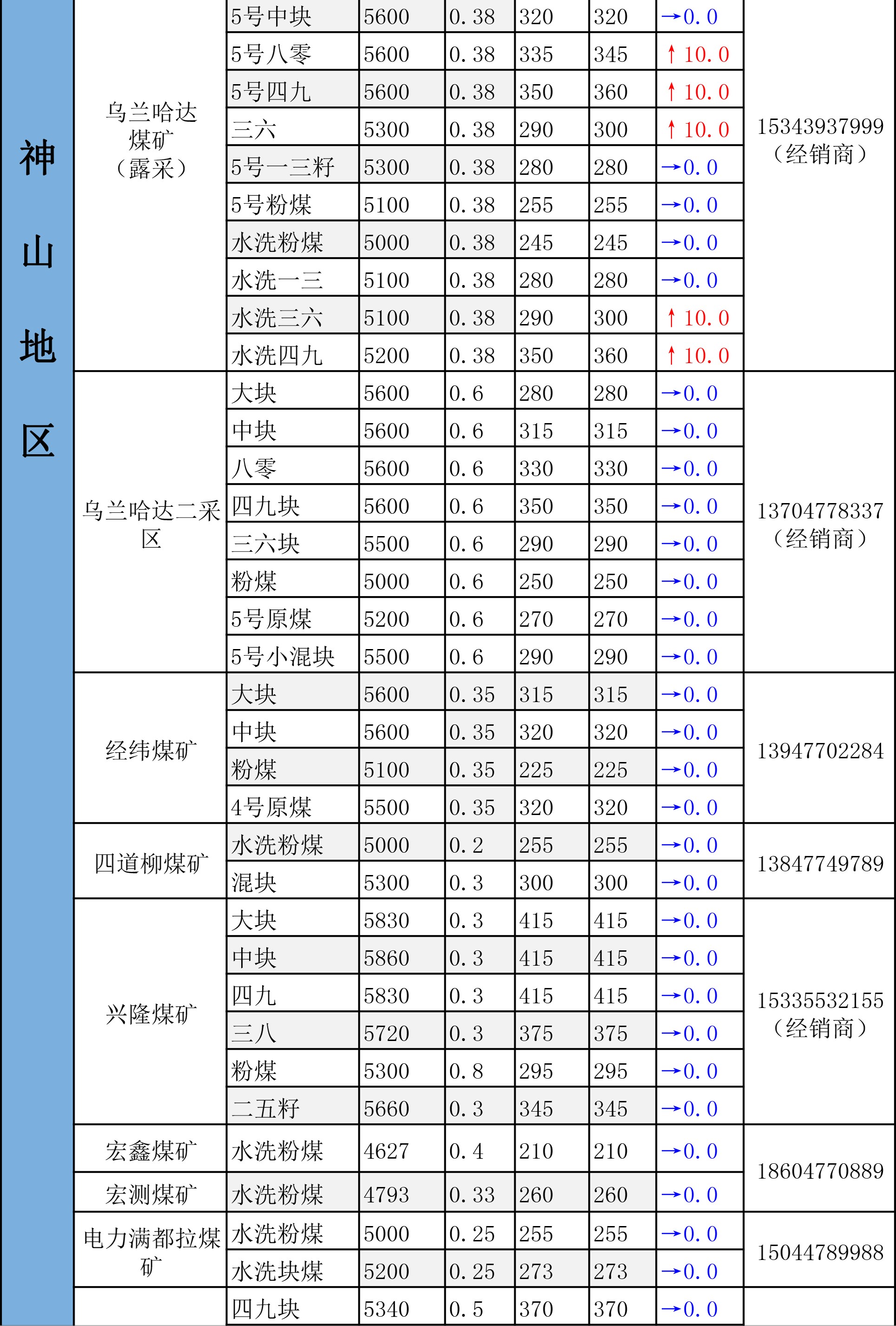 鄂尔多斯市最新煤炭坑口报价