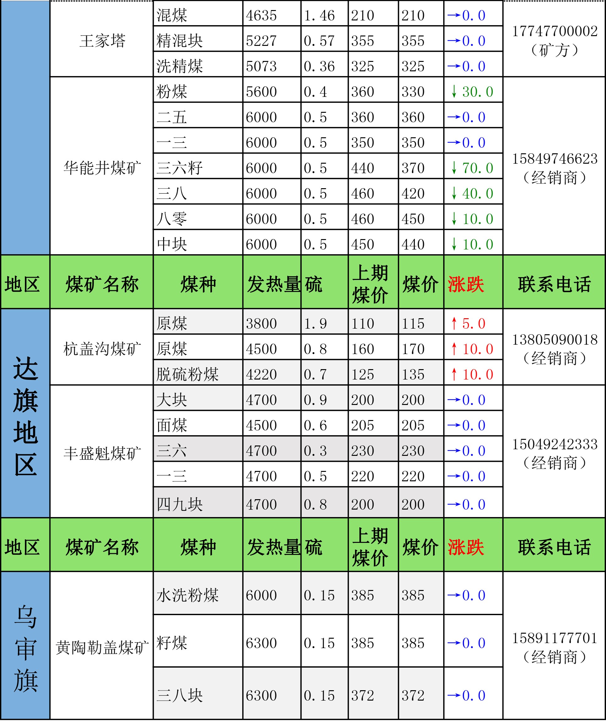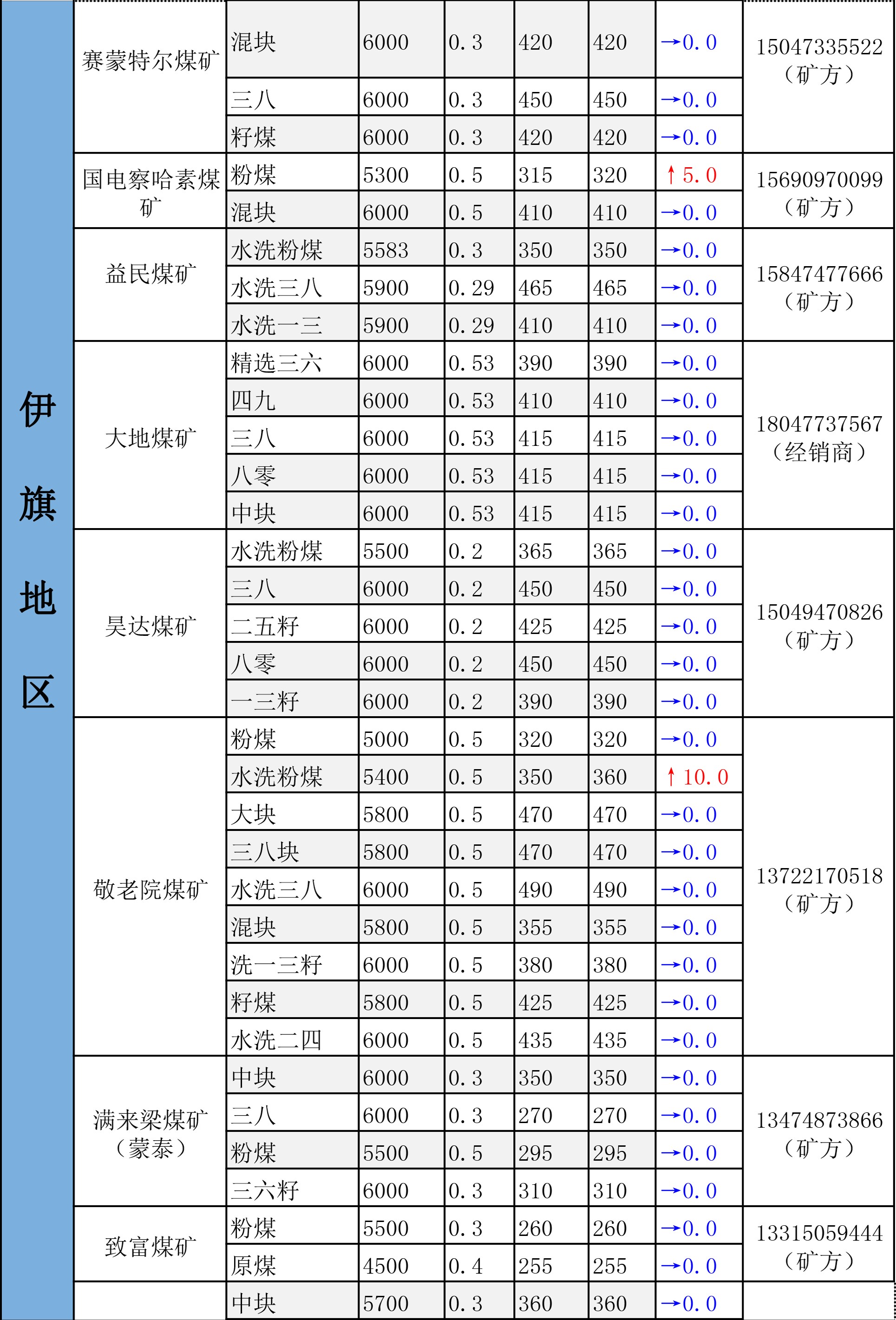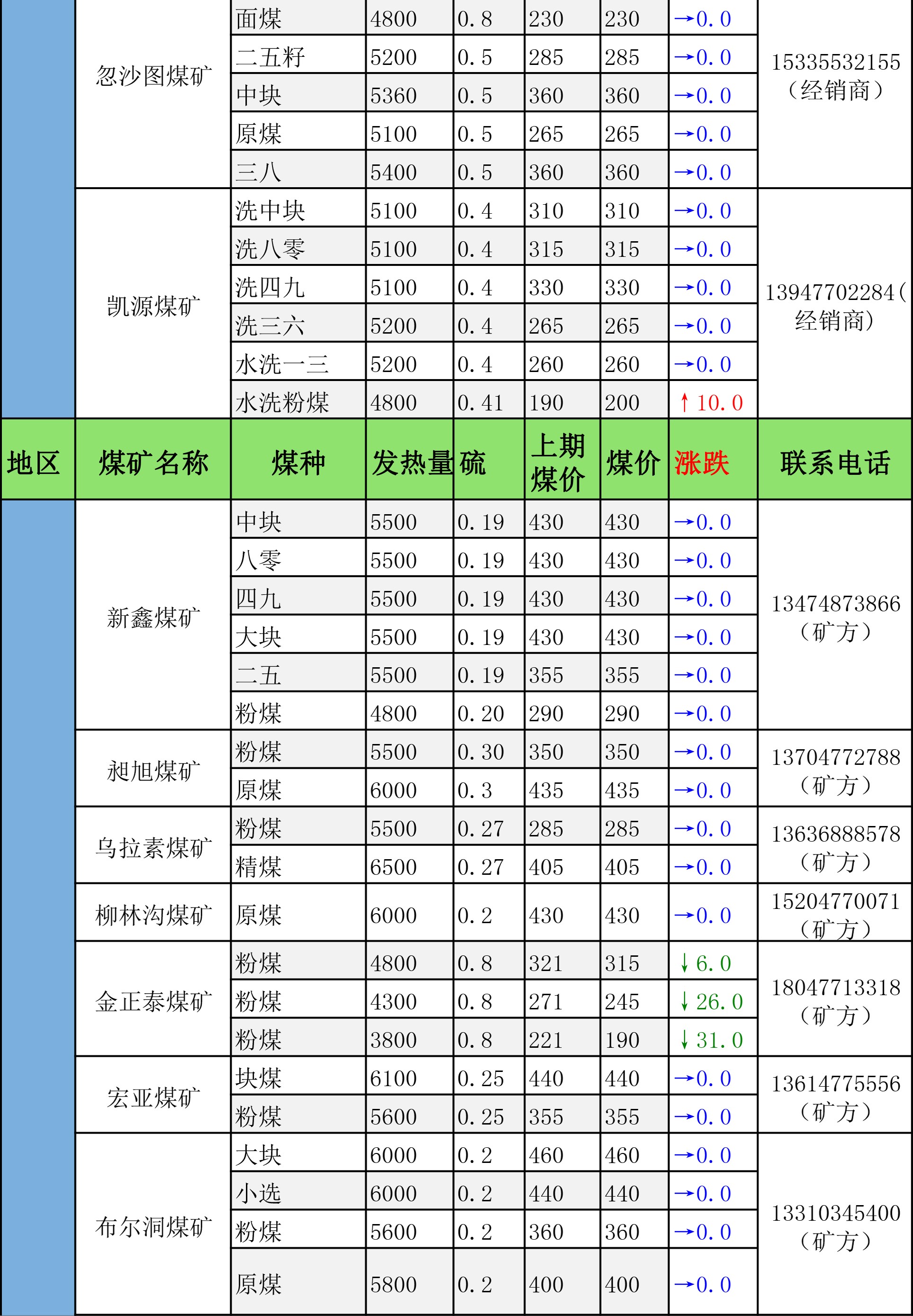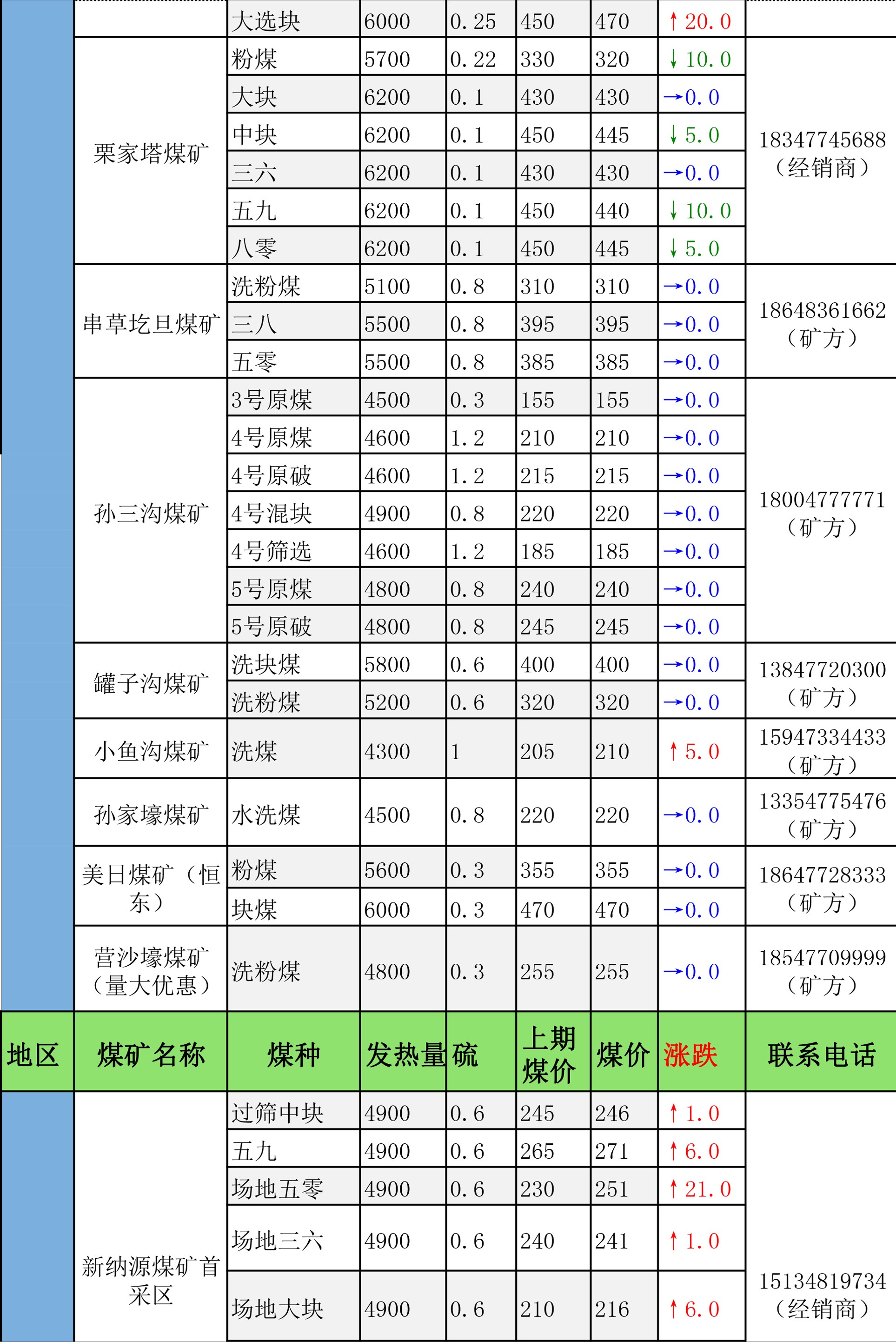 鄂尔多斯市最新煤炭坑口报价