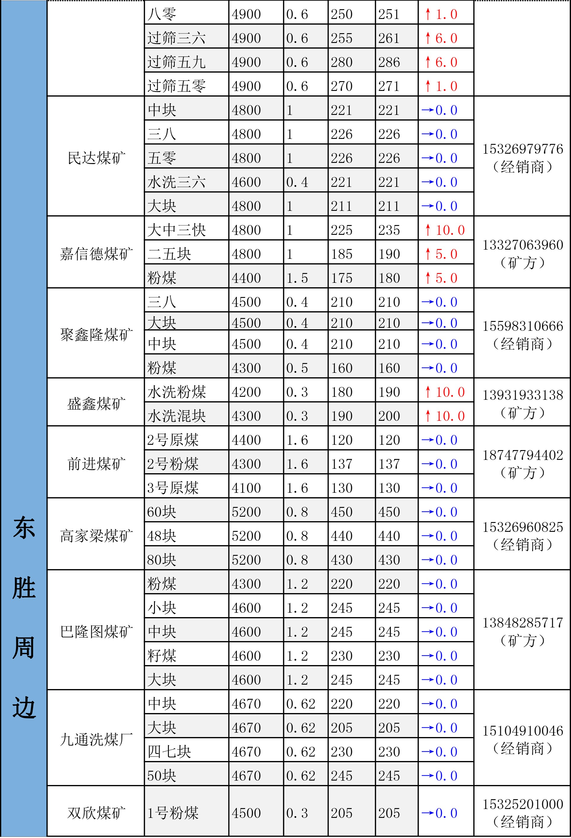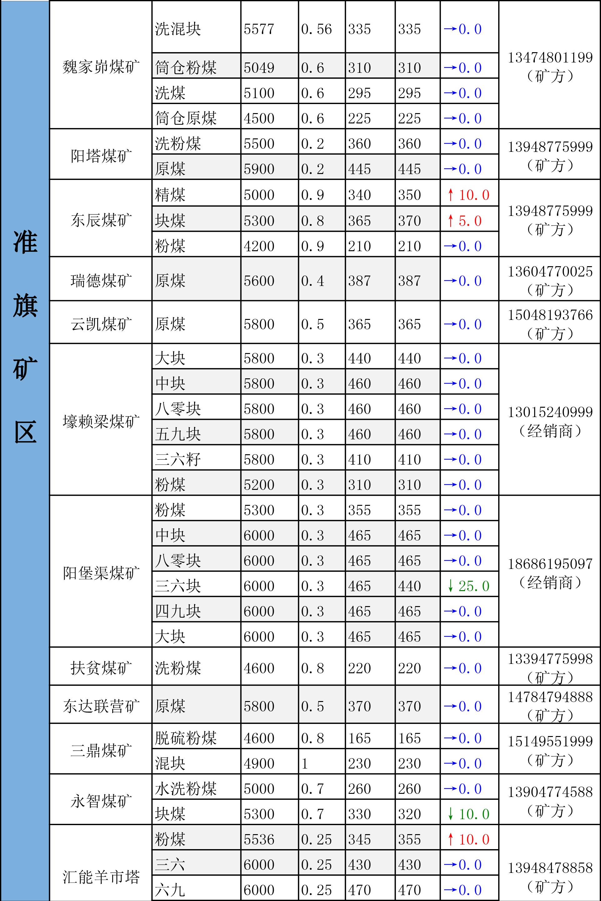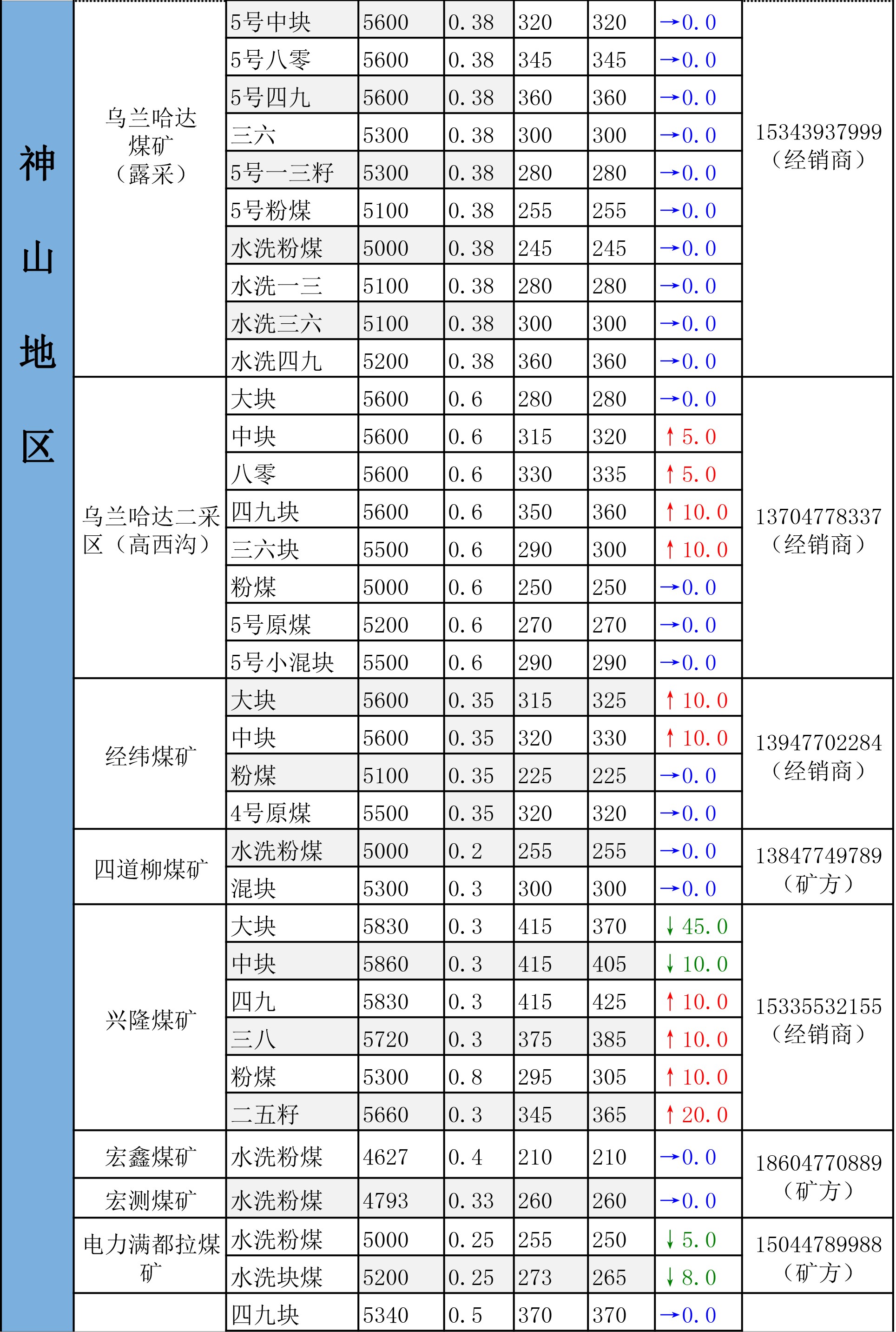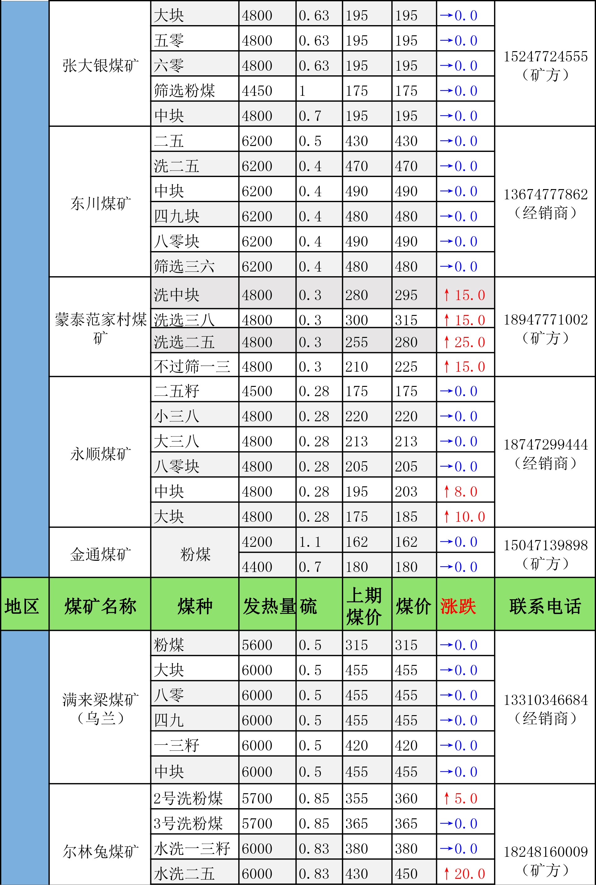 鄂尔多斯市最新煤炭坑口报价