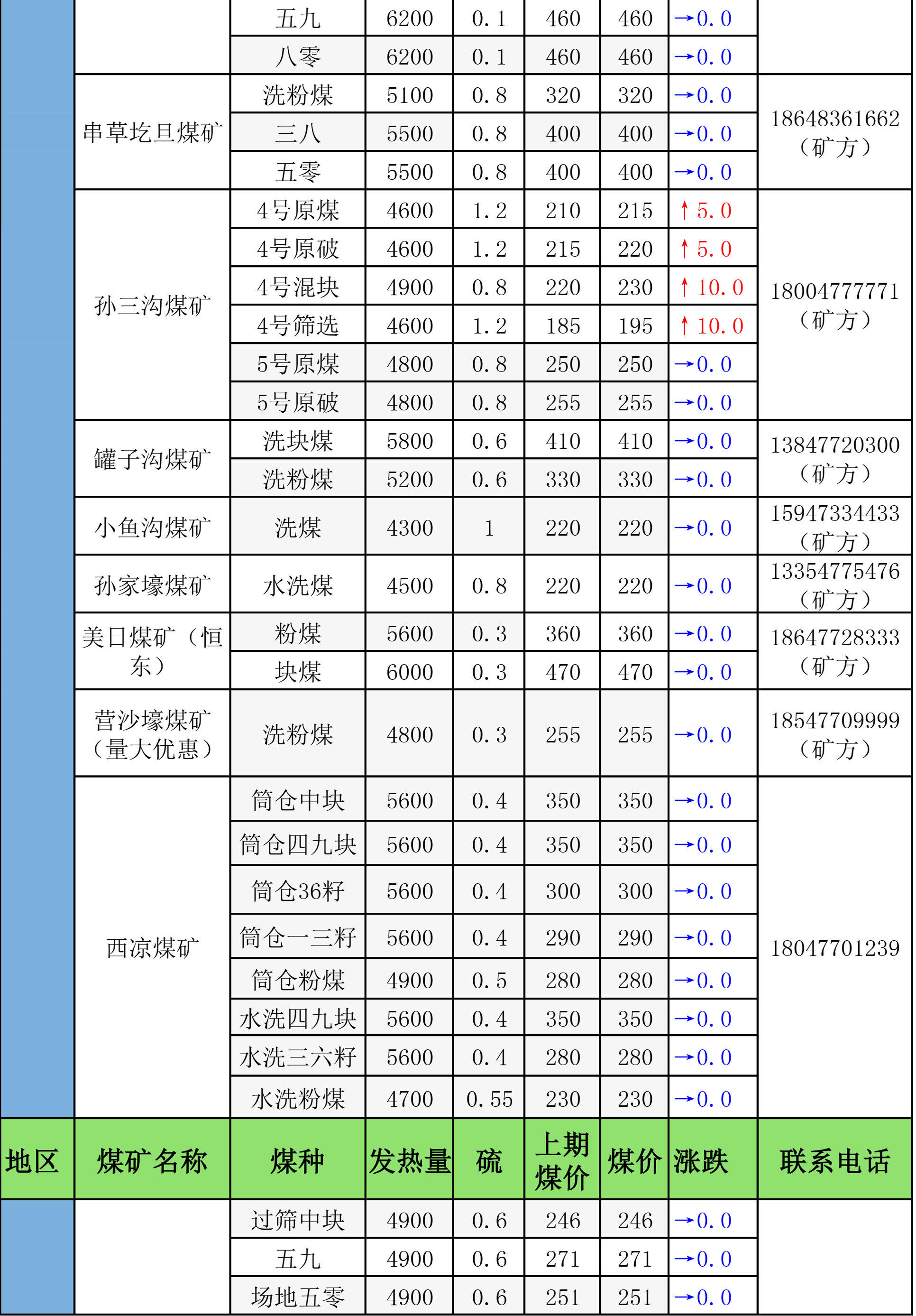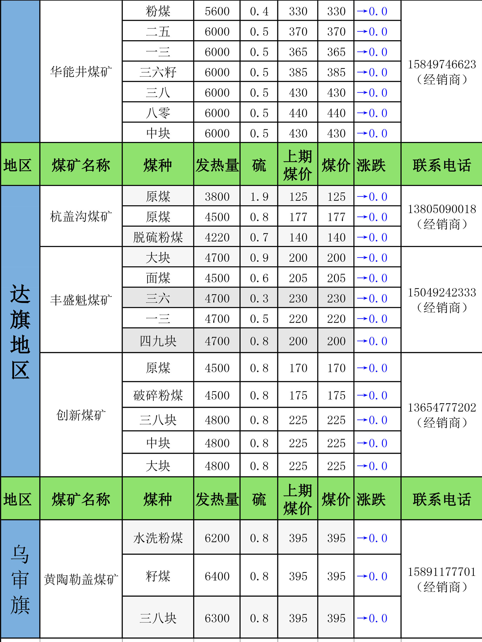 鄂尔多斯地区煤矿坑口最新报价