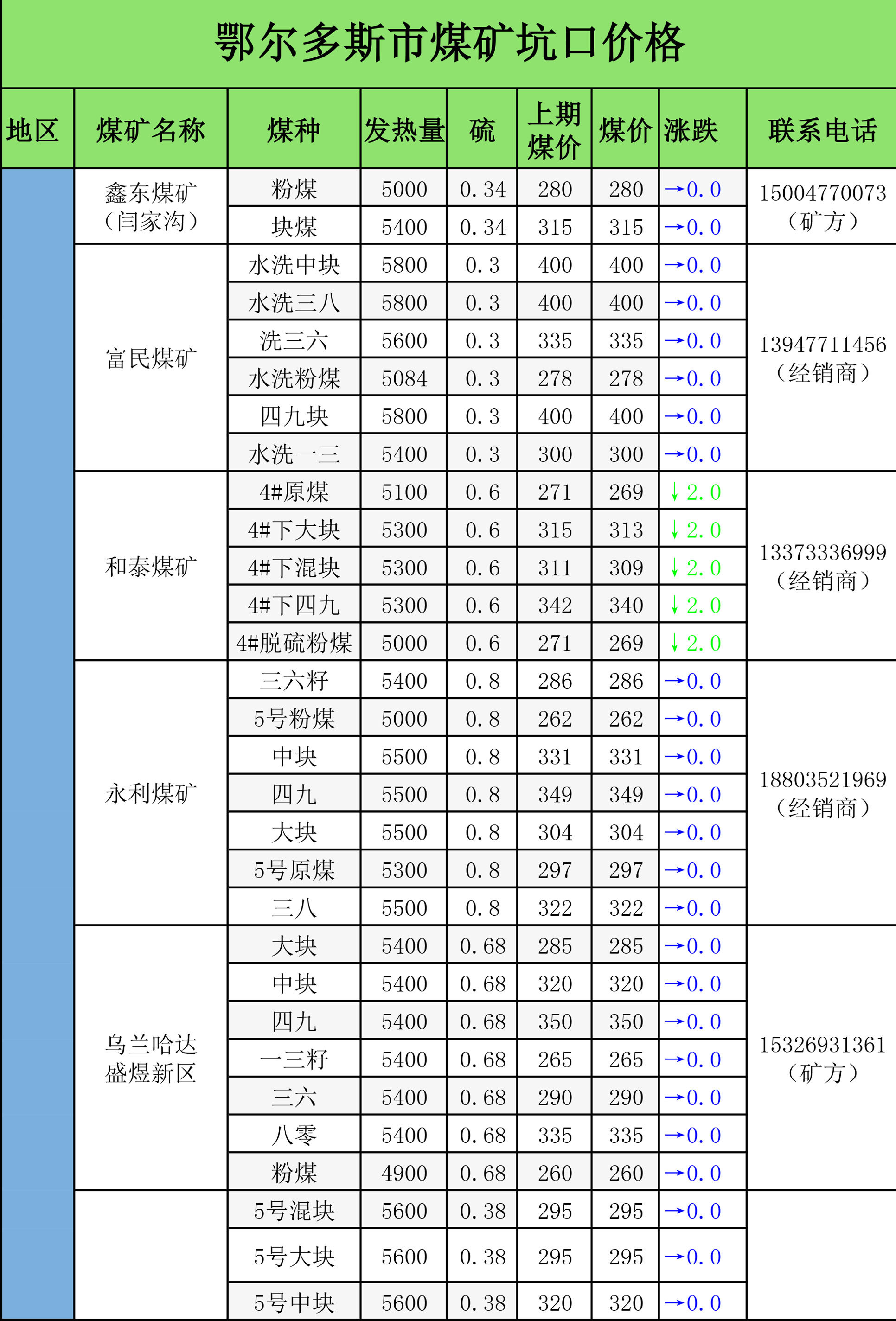 鄂尔多斯煤炭网最新数据快报(1.5)