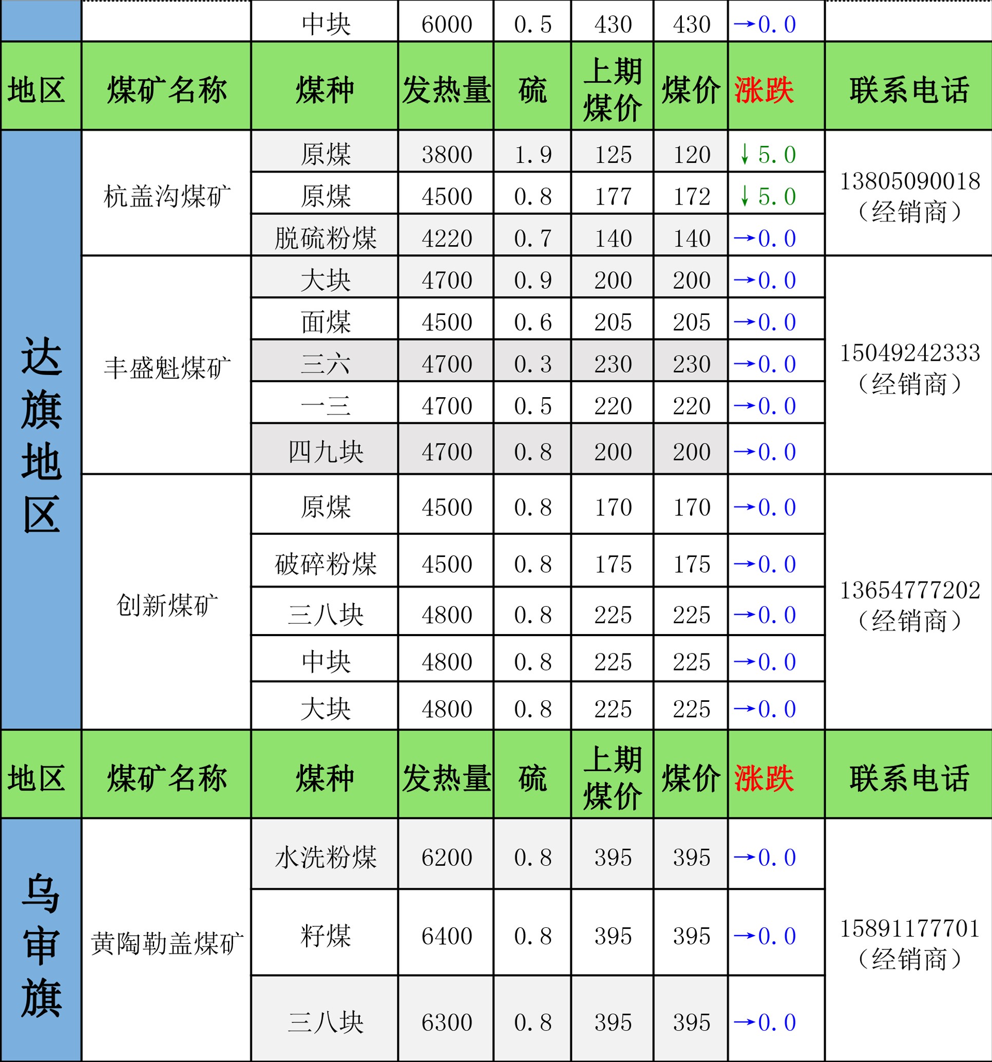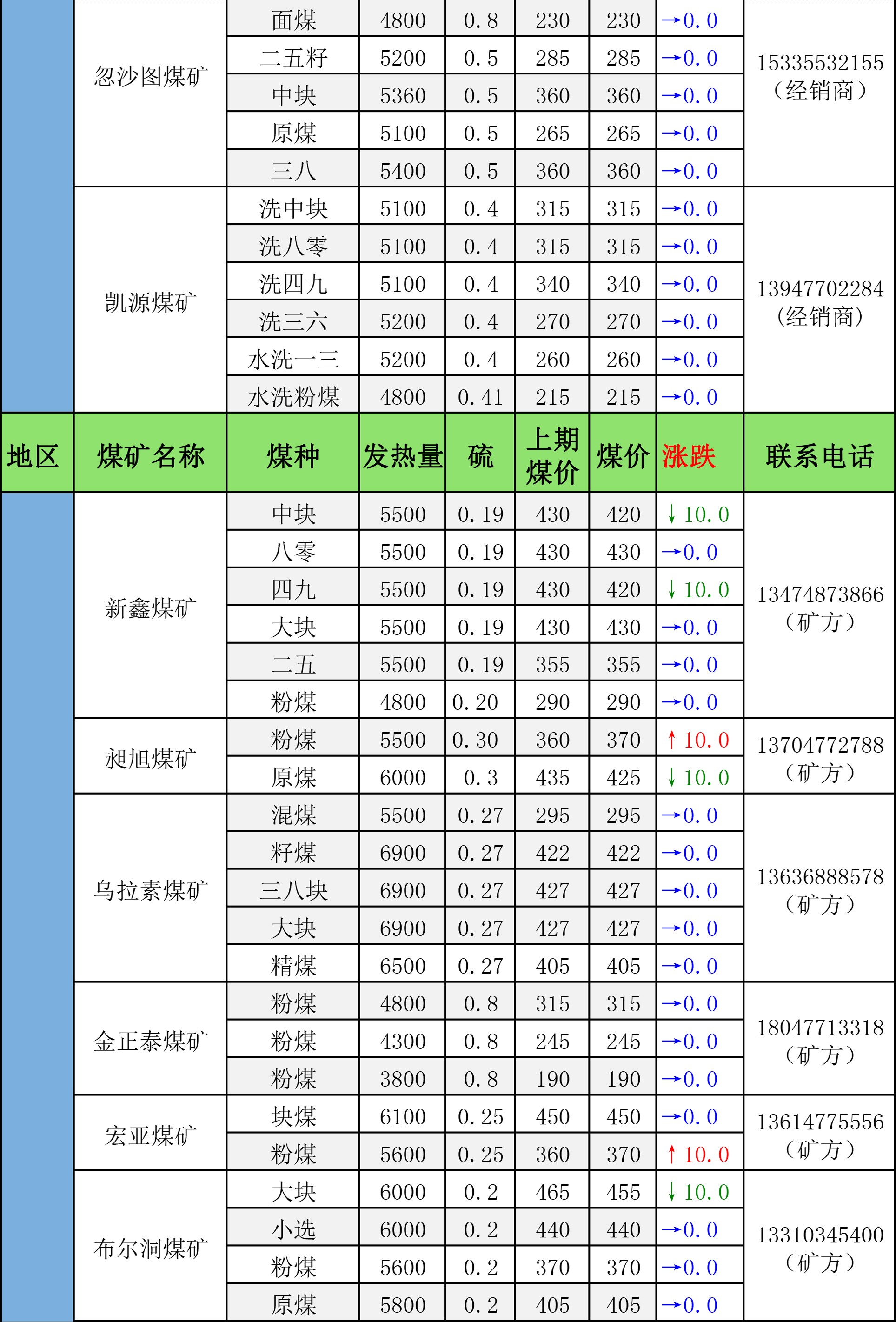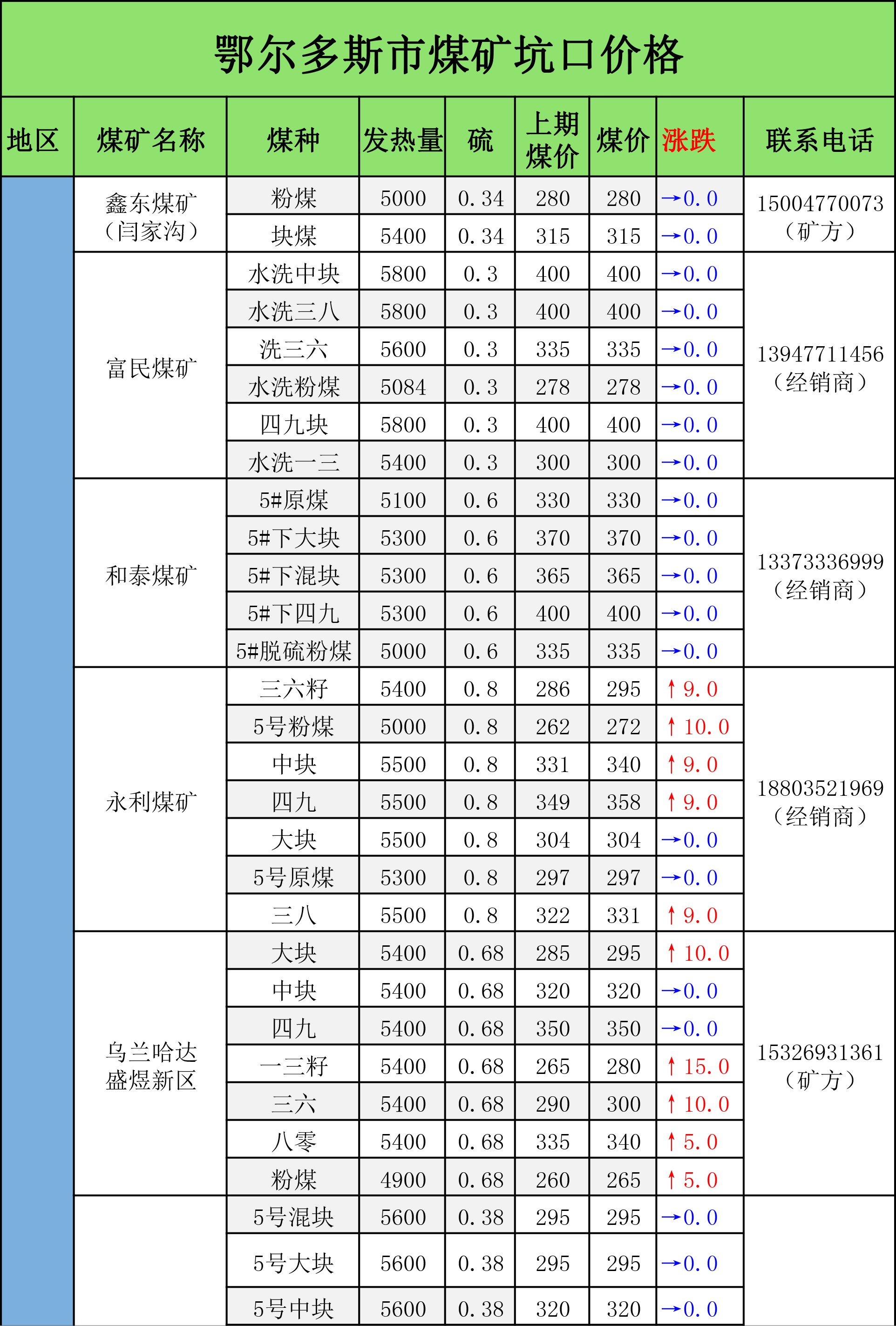 鄂尔多斯煤炭网最新数据快报(1.5)