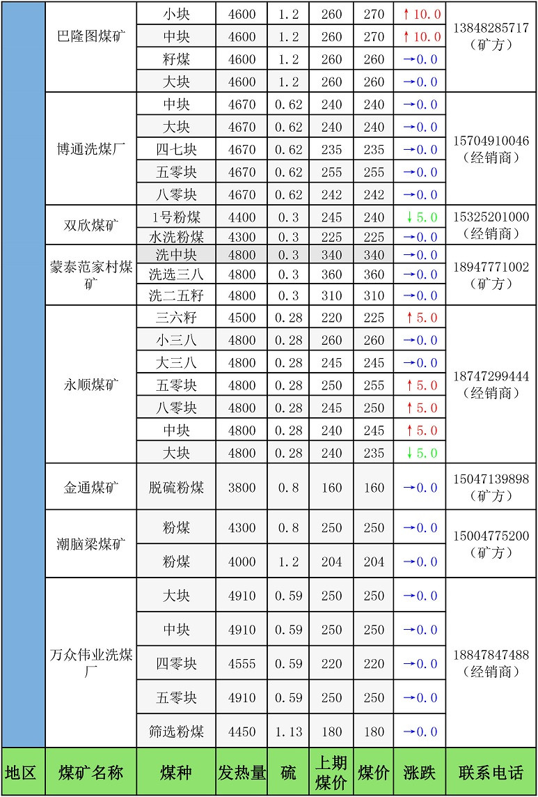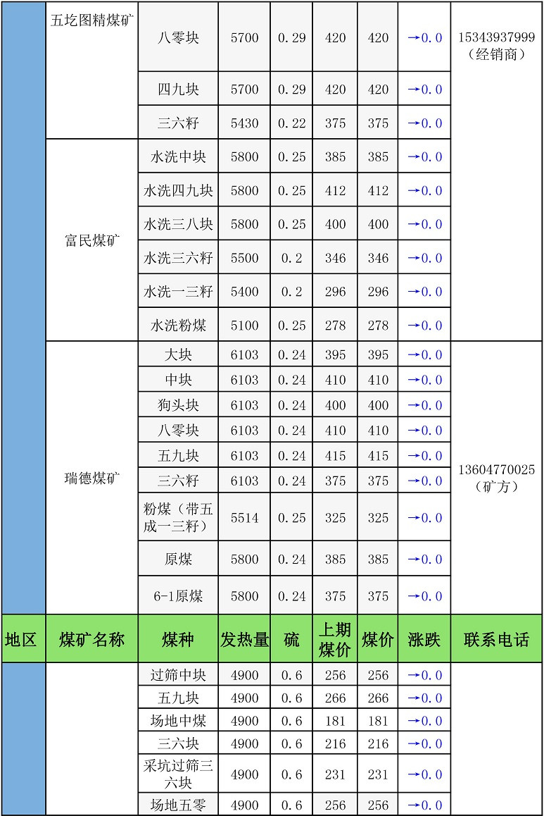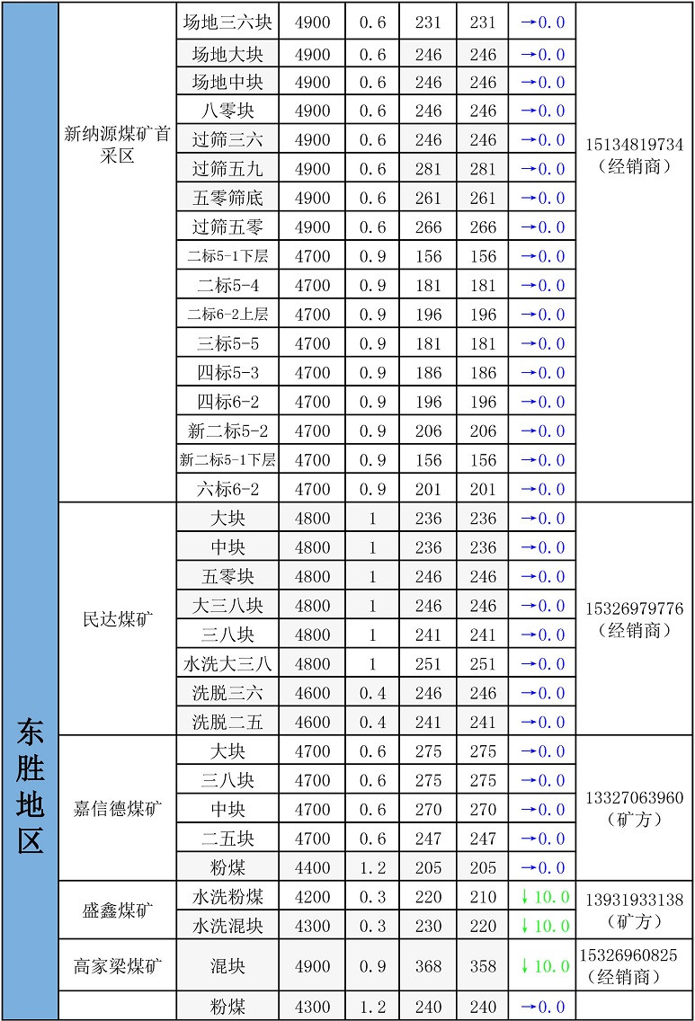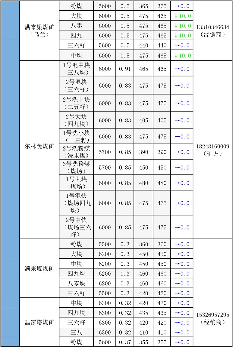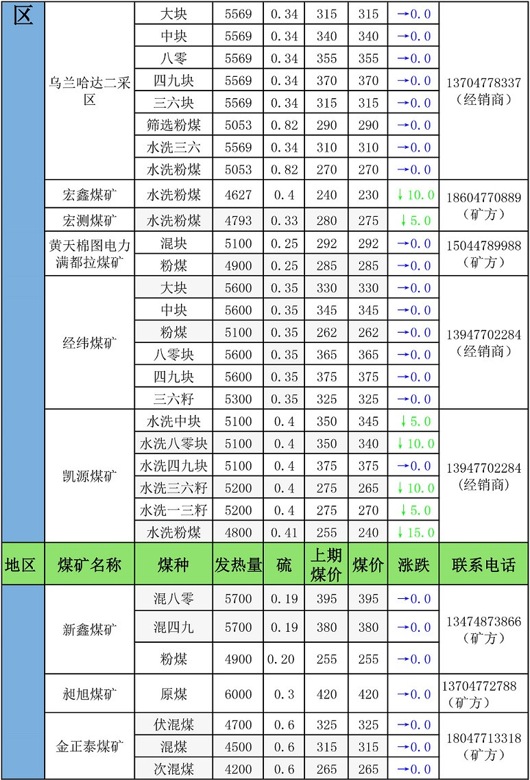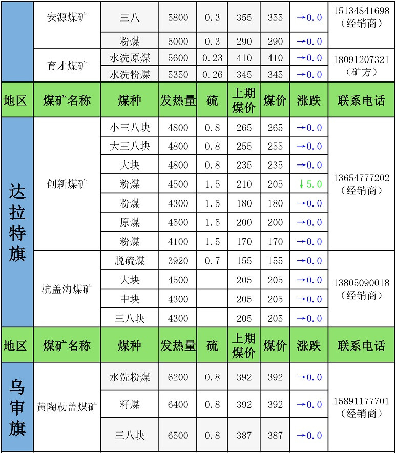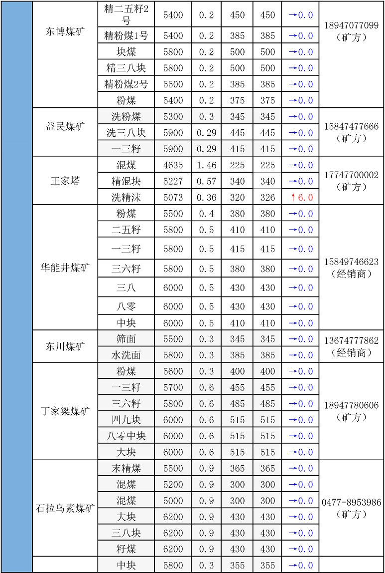 鄂尔多斯地区最新煤矿坑口报价