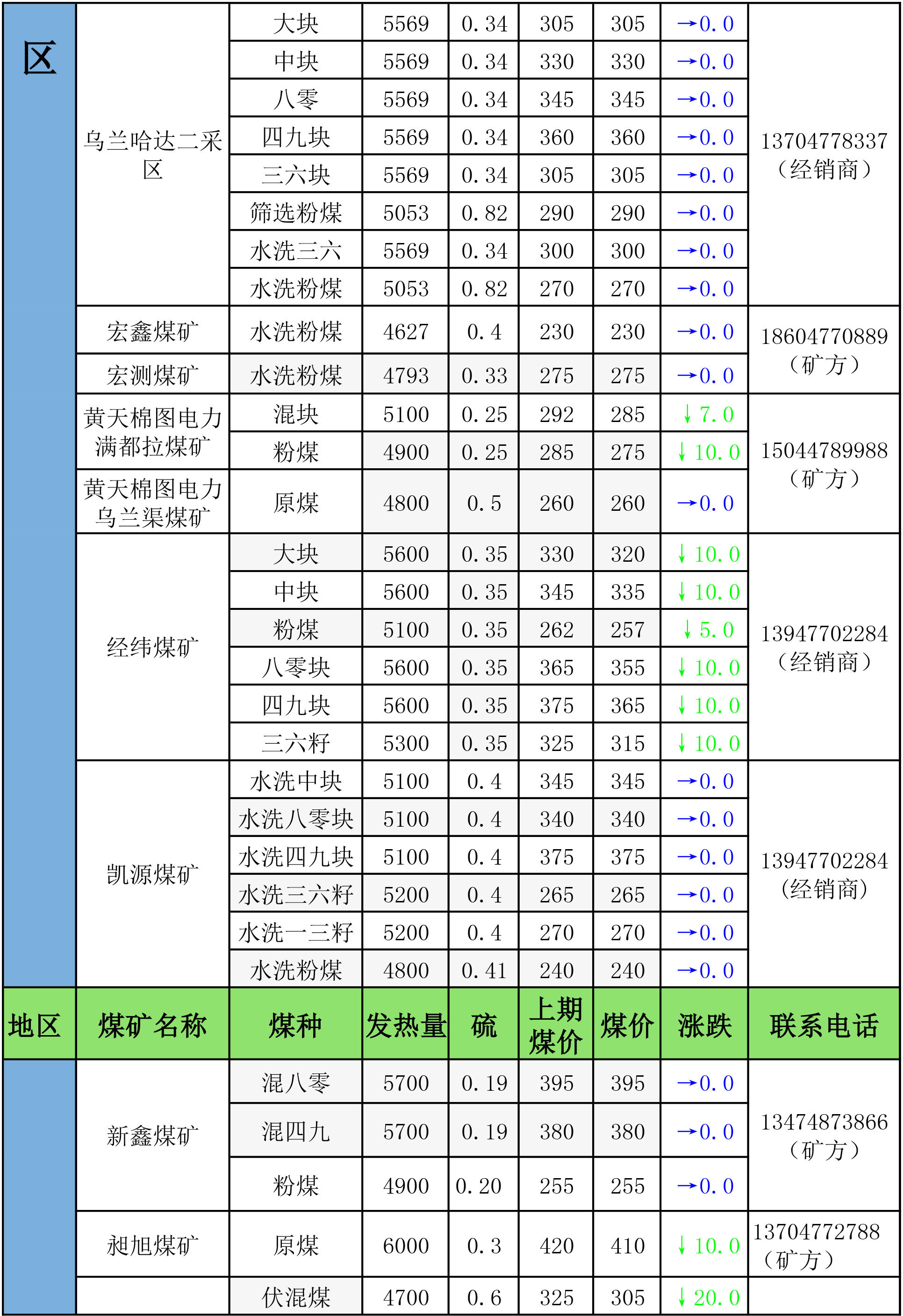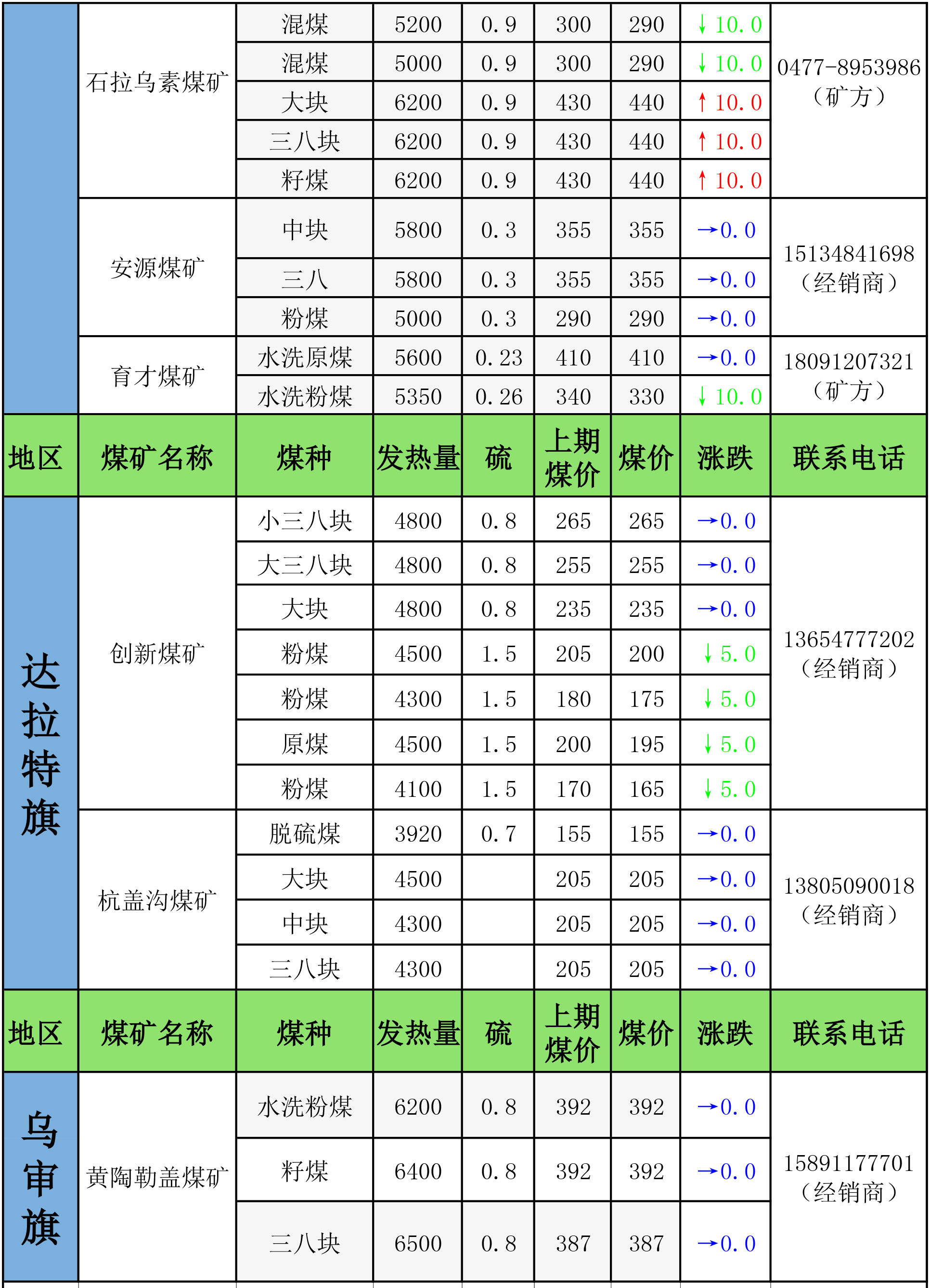 鄂尔多斯煤炭网最新数据快报(1.5)