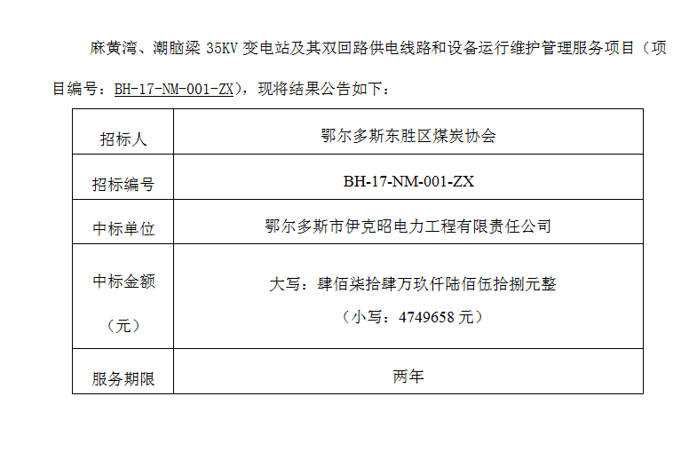 麻黄湾、潮脑梁35KV变电站及其双回路供电线路和设备运行维护管理服务招标项目