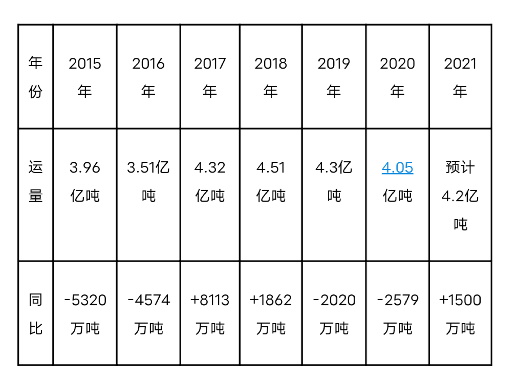 大秦铁路西起山西大同,东至河北秦皇岛,是我国第一条双线电气化重载运煤专线。大秦线每年完成煤炭运量约占全国铁路煤炭发送总量的23%,货物发送量、煤炭发送量继续在全国铁路货运市场中占重要地位,在区域煤炭运输市场具有较强的竞争优势。通过大秦线连接秦皇岛港(唐山港口群)和北方的资源产地,煤炭可以通过海运装船的方式运往山东、上海、浙江、福建、广东等地,供应给当地电力、化工、冶金、建材等行业使用。通过这条通道,来自晋北、蒙西、陕北等地煤炭在这里聚集后流向全国各地,也给秦皇岛港成为中国第二大能源输出港和承担 “八省一市”煤炭供应的枢纽港奠定了坚实基础。