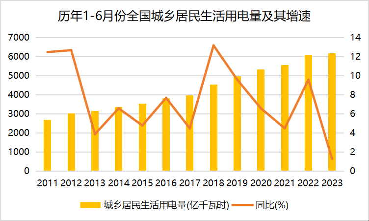 6月份全社会用电量同比增长3.9%